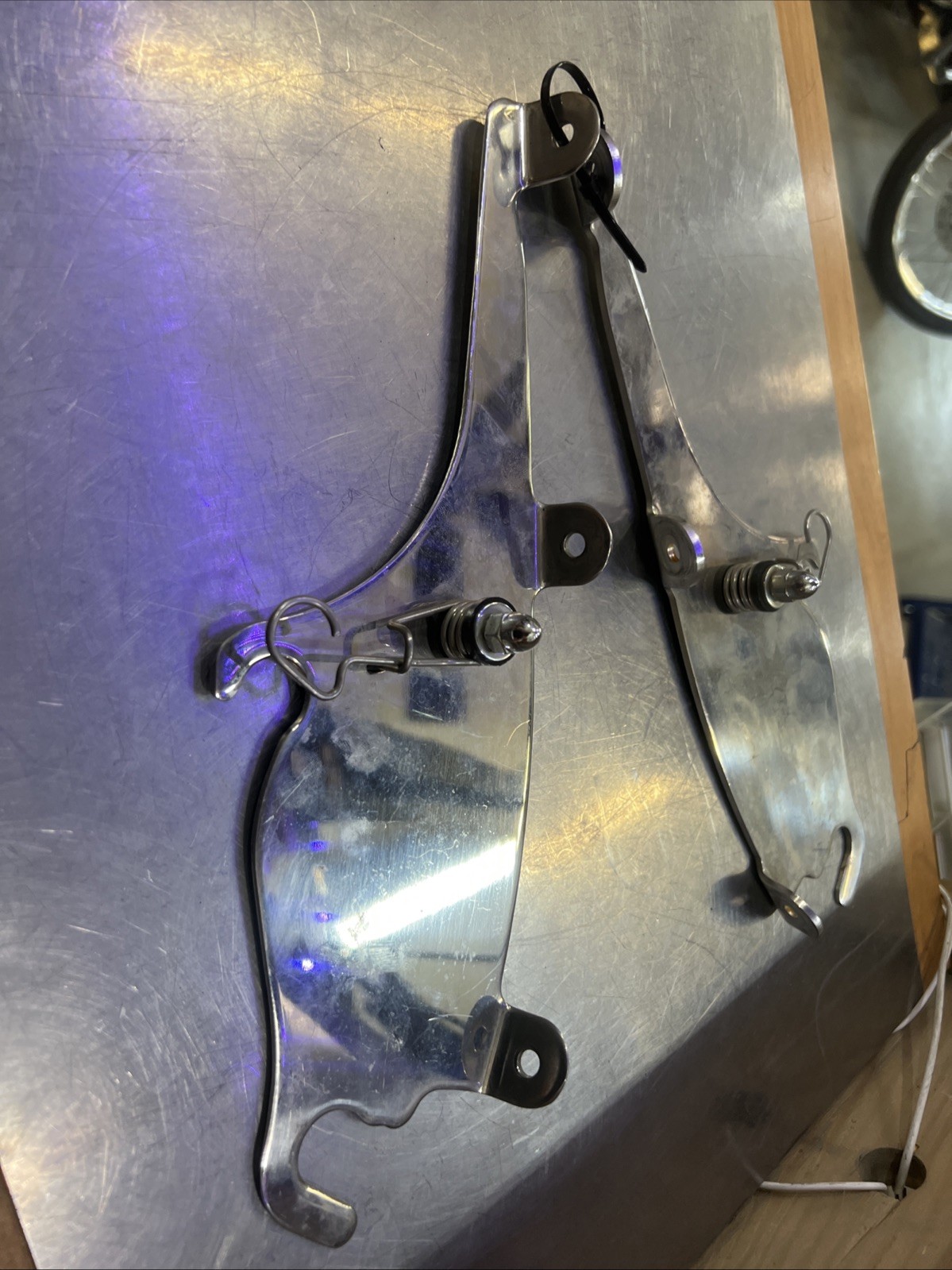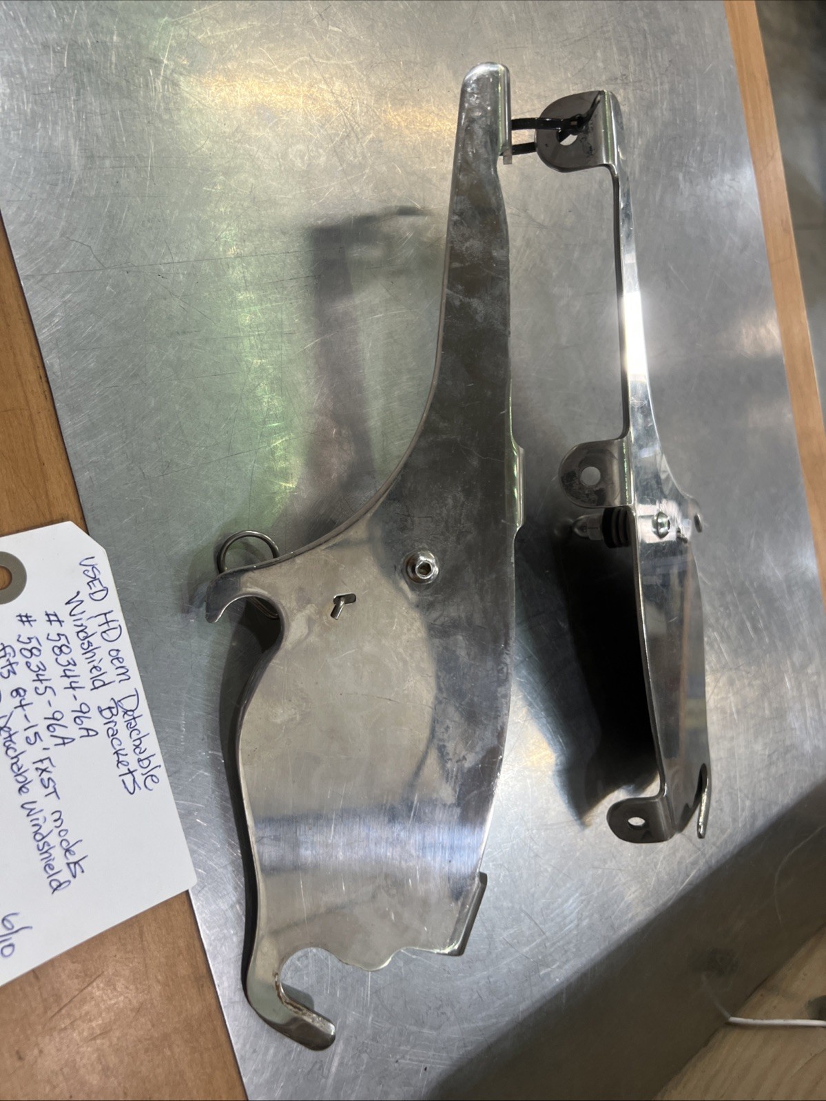 Harley Davidson oem Detachable Windshield Brackets #58344-96A/58345-96A. Condition is used. Fits 84-15’ FXST models with Harley Davidson Detachable Windshield buyer is responsible for fitment and applications