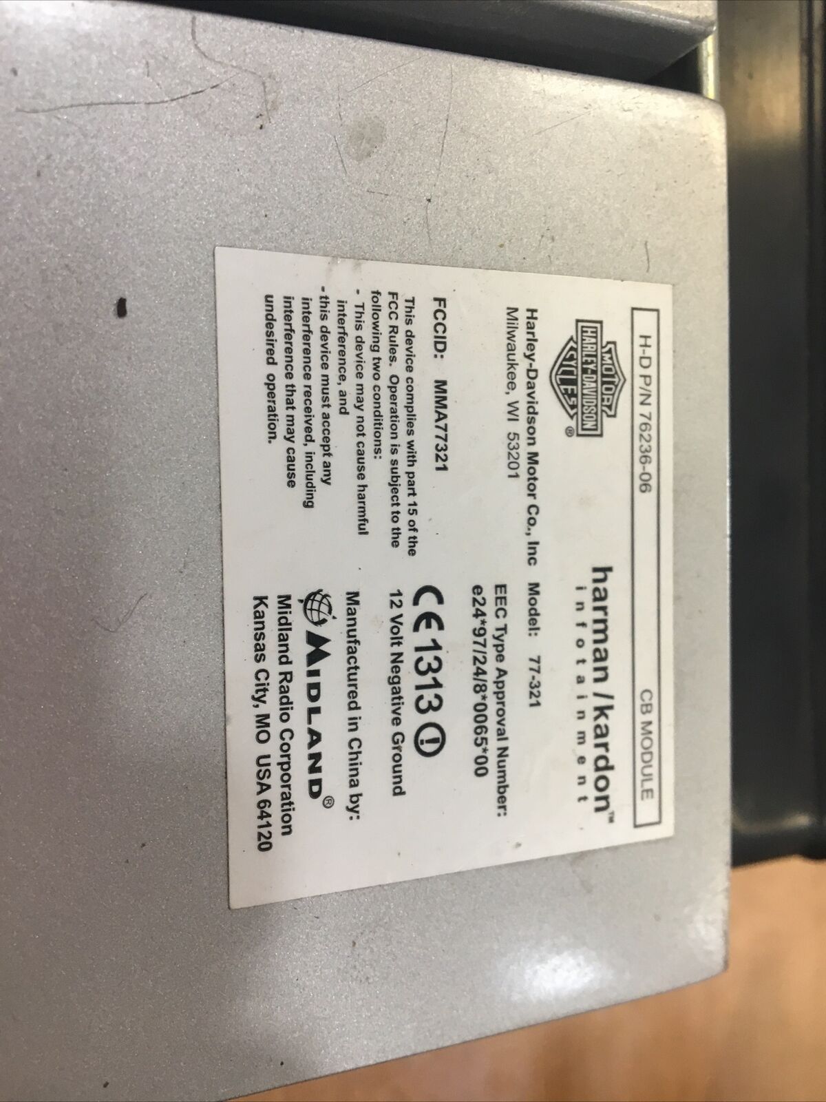 Harley Davidson Oem Harmon/Kardon Cb/XM Radio #76160-06. Condition is used. Has XM module satellite radio tuner and cb module built in. Fits 06-13’ Touring models came off of 06’ FLHTCUSE buyer is responsible for fitment and applications