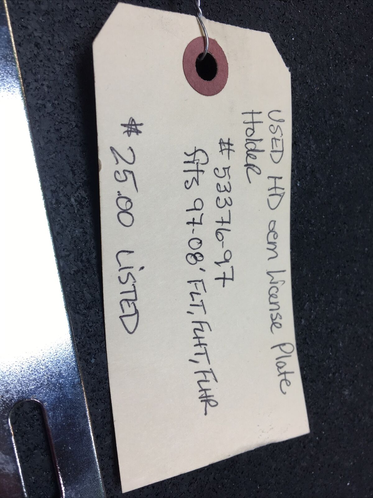 Harley Davidson oem License Plate Holder #53376-97. Condition is used. Fits 97-08’ FLT, FLHT, FLHR models buyer is responsible for fitment and applications