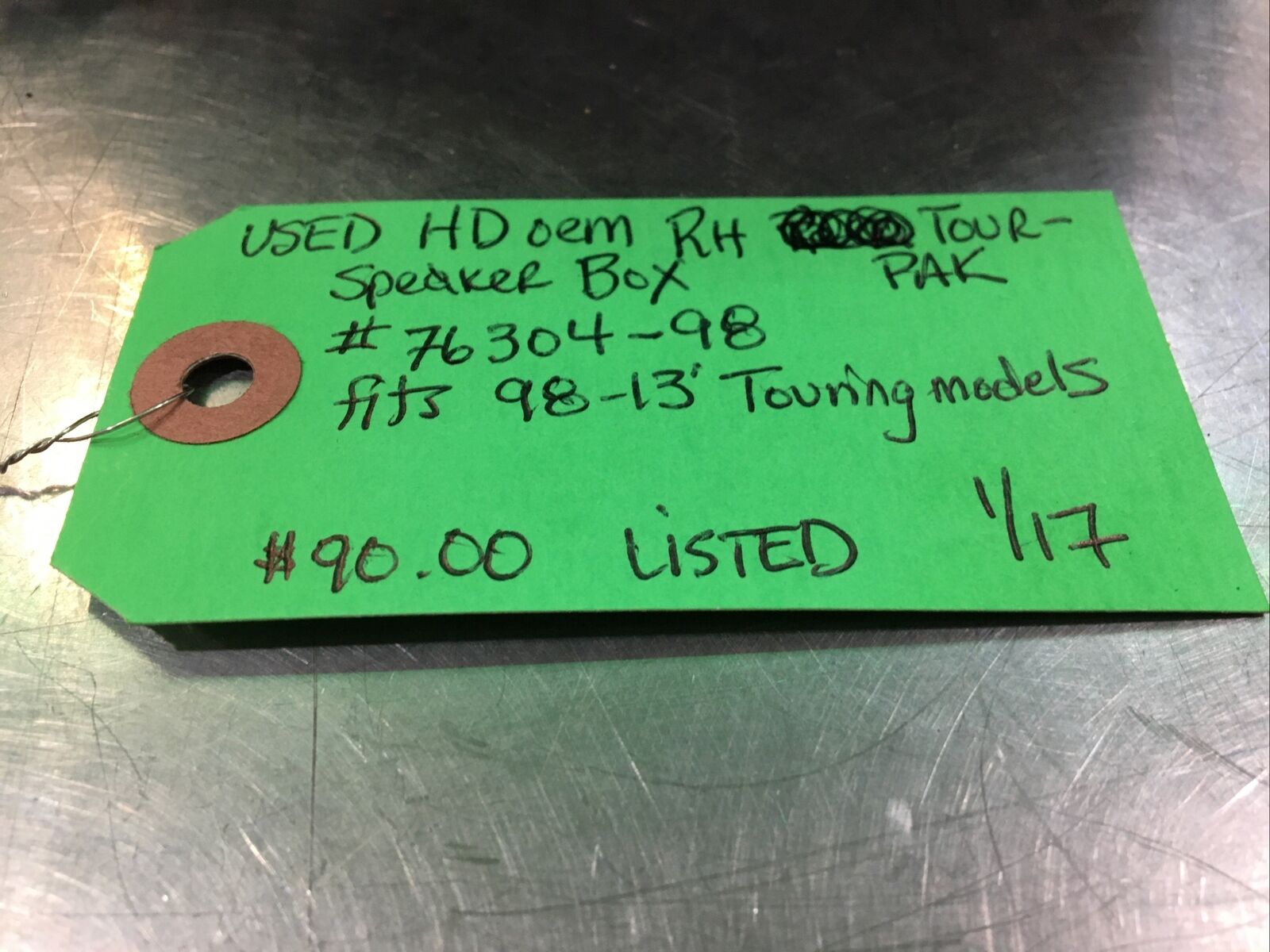 Harley Davidson oem RH Tour-Pak Speaker Box #76304-98. Condition is used. Fits 98-13’ Touring models buyer is responsible for fitment and applications