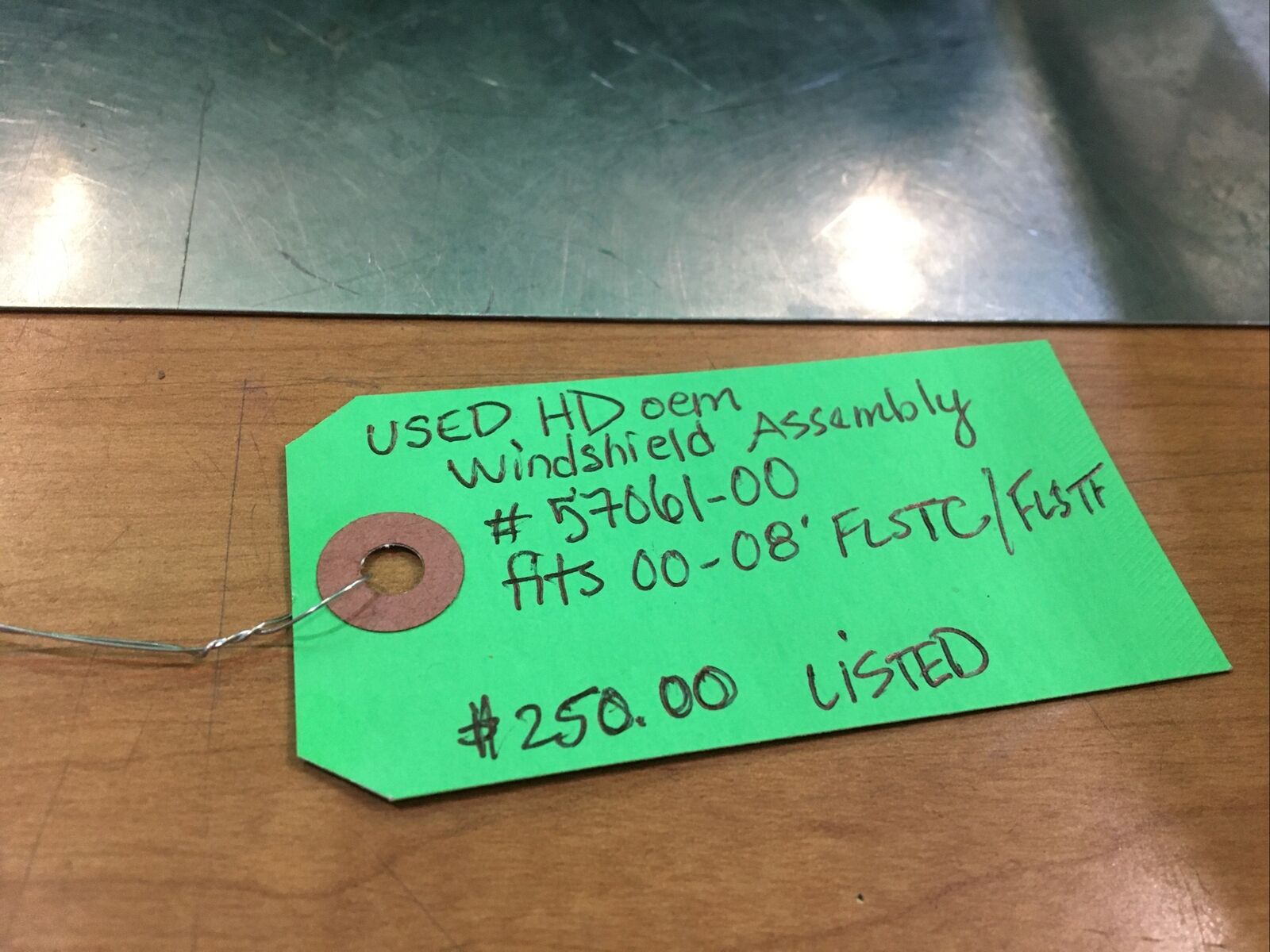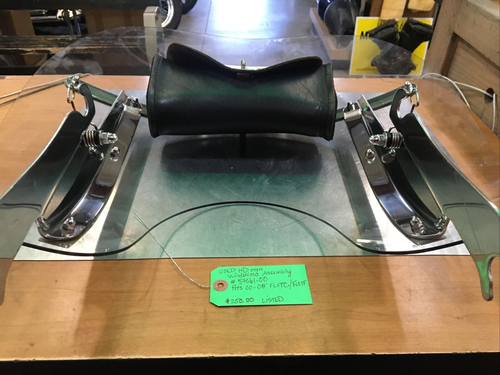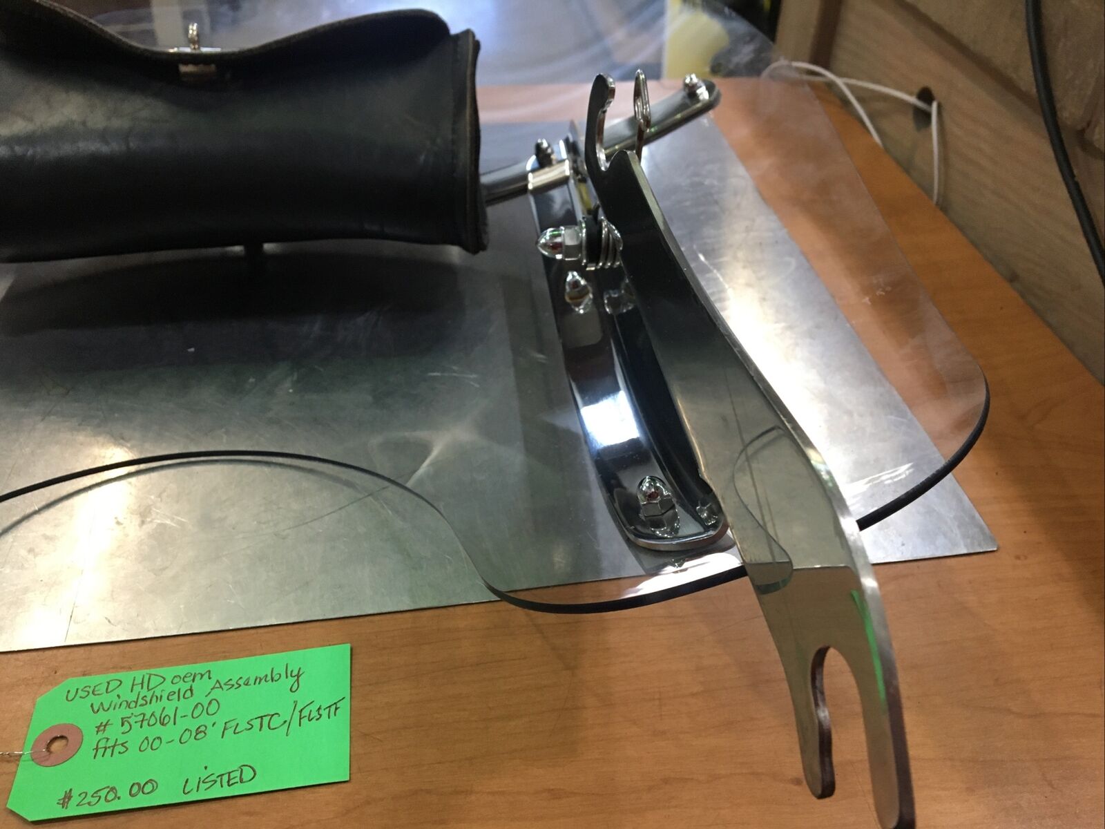 Harley Davidson oem Windshield Assembly #57061-00.Condition is used. Has a couple scratches seen in pictures.Fits 00-08’ FLSTC / FLSTF models buyer is responsible for fitment and applications