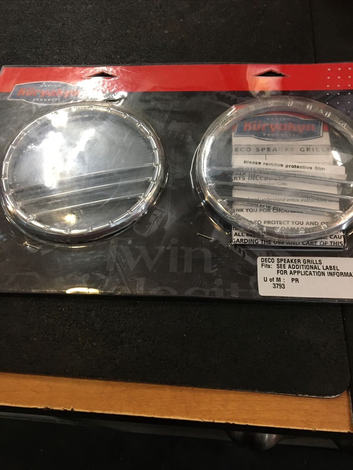 Kuryakyn Deco Front Speaker Grills #3793. Condition is “New”.fits 96-13’ FLHT, 06-13’ FLHX And 09-13’ Trikes except CVO models buyer is responsible for fitment and applications no returns