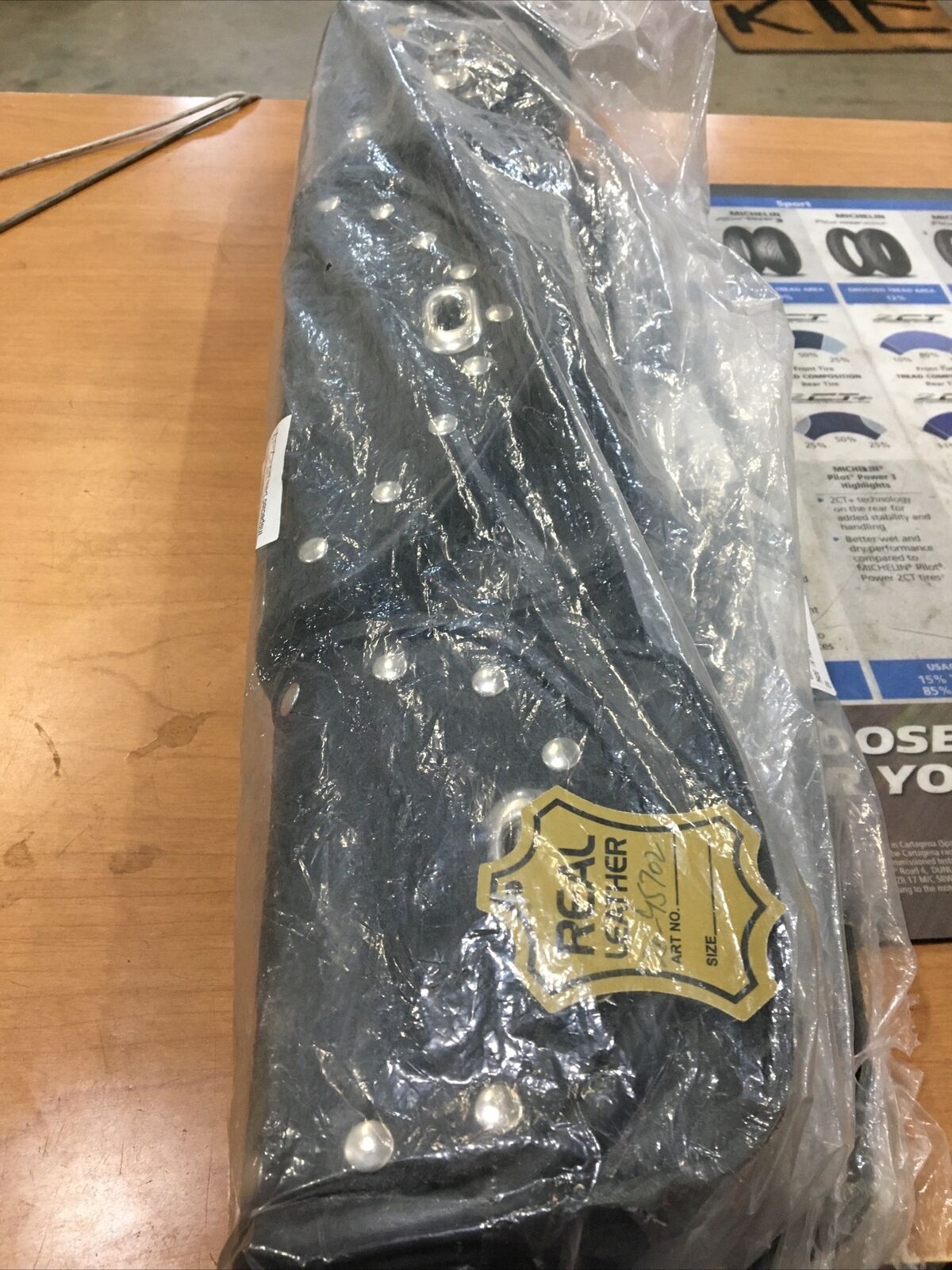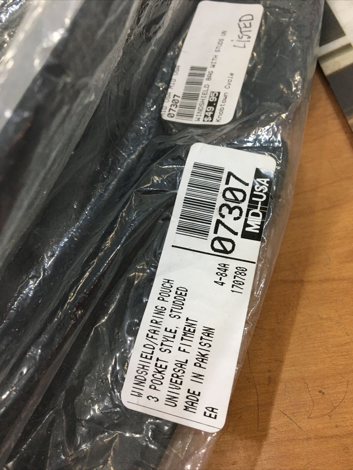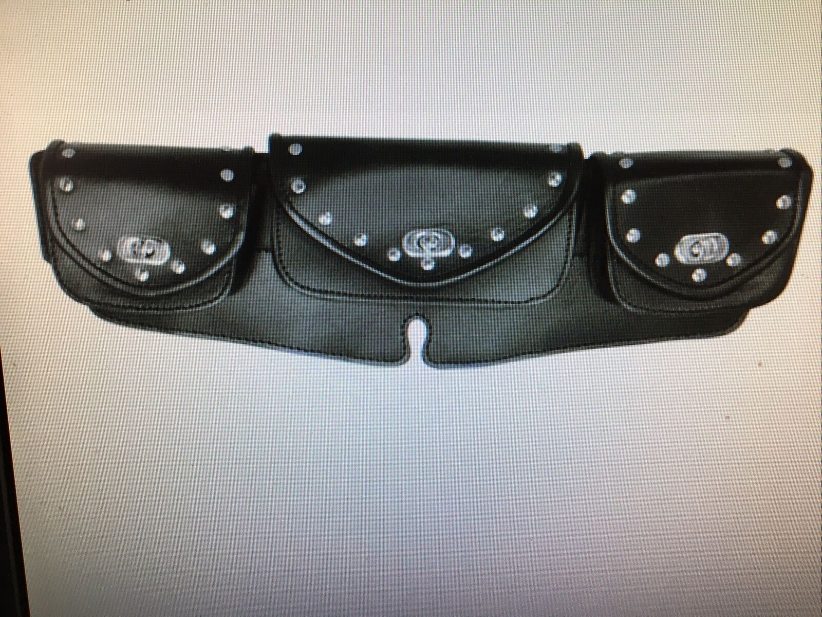 V-Factor Studded 3 Pocket Fairing Pouches #07307. Condition is new. Overall length 22”, small pouches 5-1/2” x 4”, large pouch 8-1/2” x 4” all pouches measure 2” deep hardware not included you will need (3) 1/4-20 x 1” screws needed for installation buyer is responsible for fitment and applications
