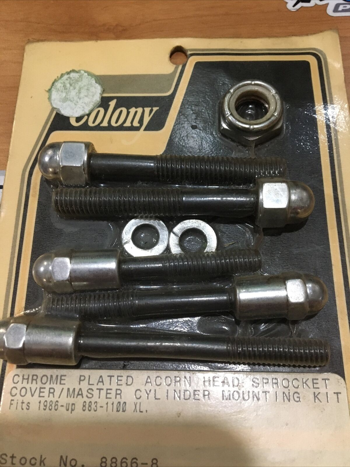Colony sprocket cover/ master cylinder mounting kit chrome acorn #8866-8.