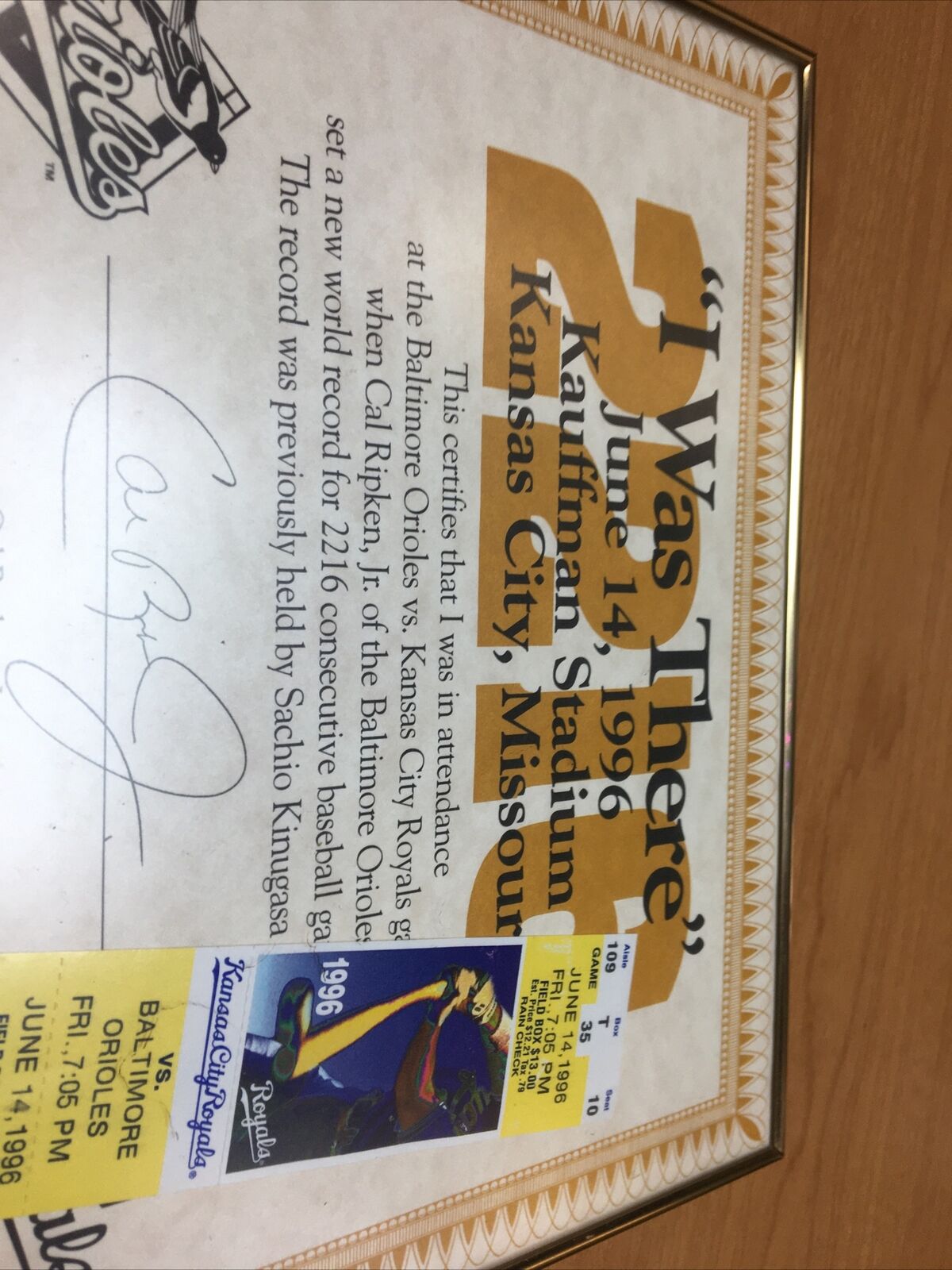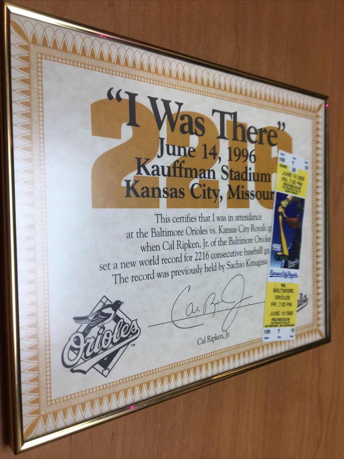 “I Was There” Cal Ripken JR. Sets World 2216 Consecutive Games 6/14/96