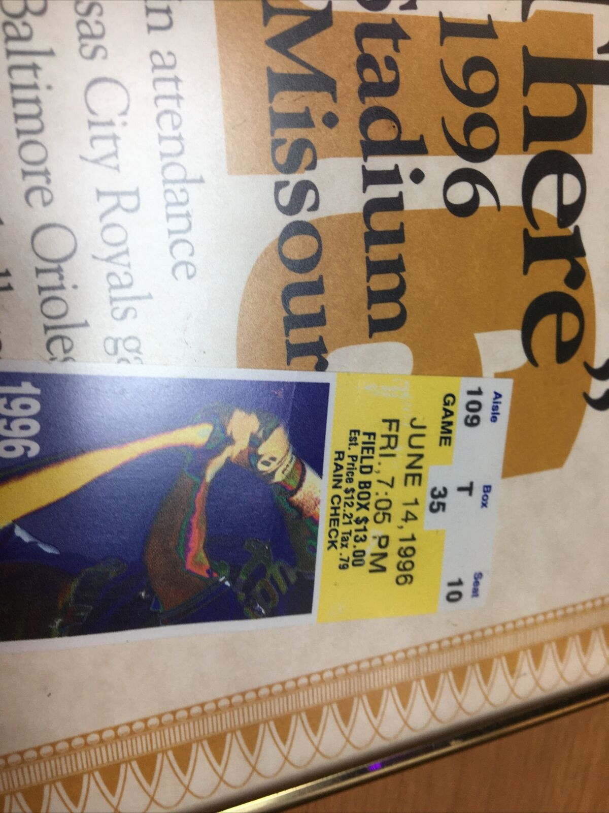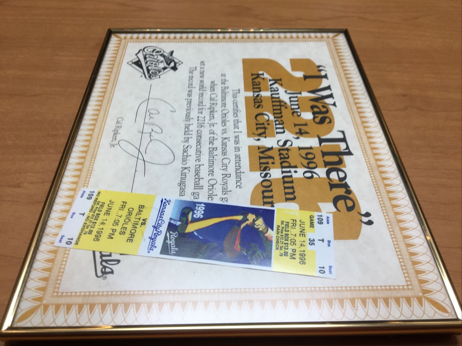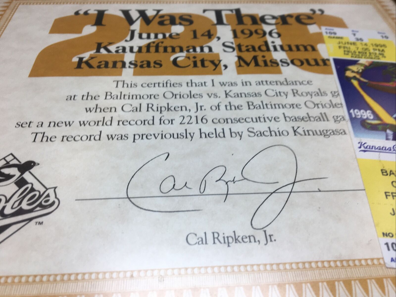 “I Was There “ Cal Ripken Jr. Sets World Record 2216 Consecutive Games 6/14/96. Preowned.