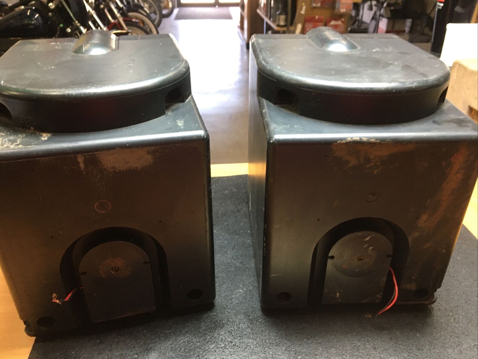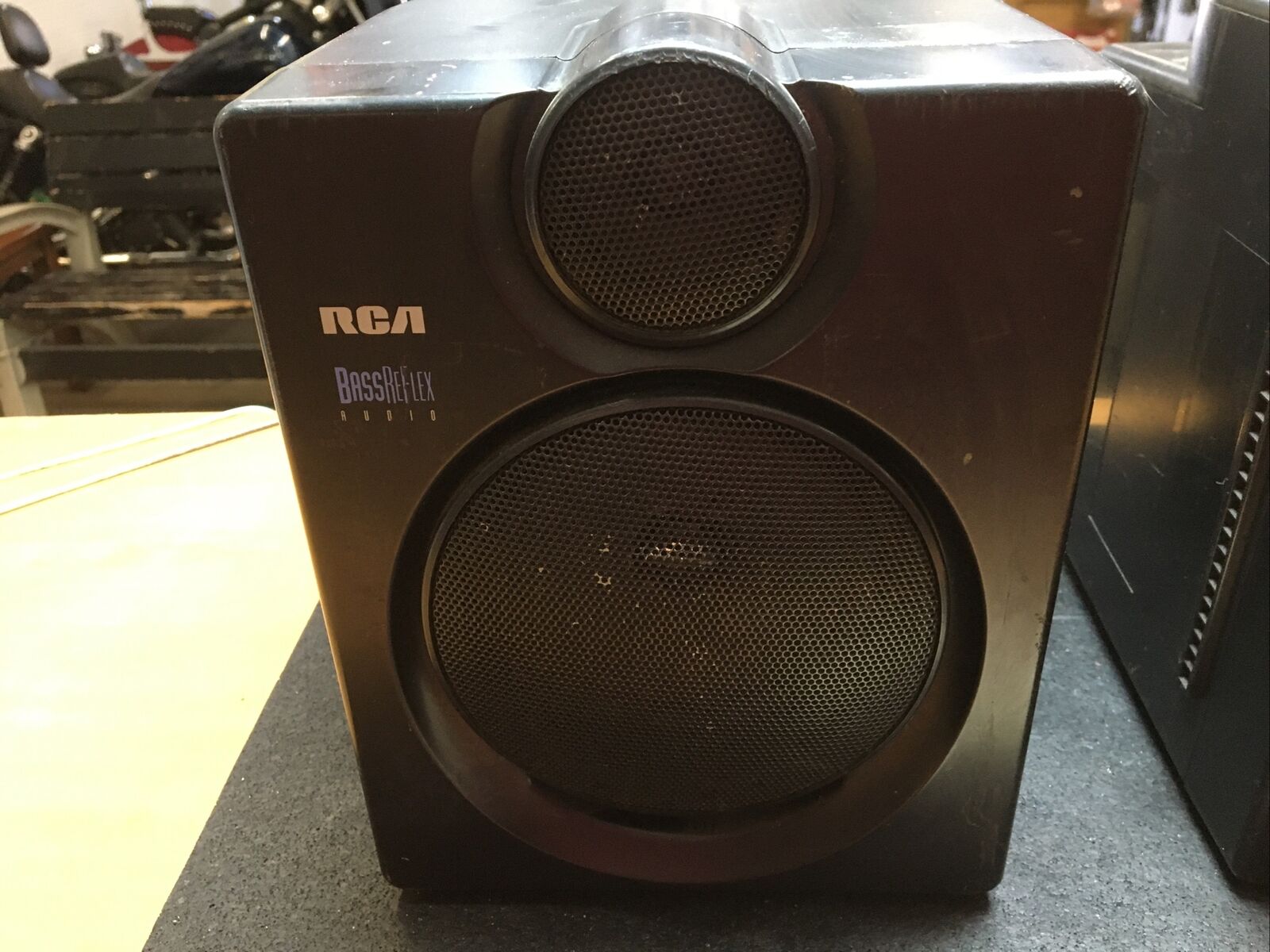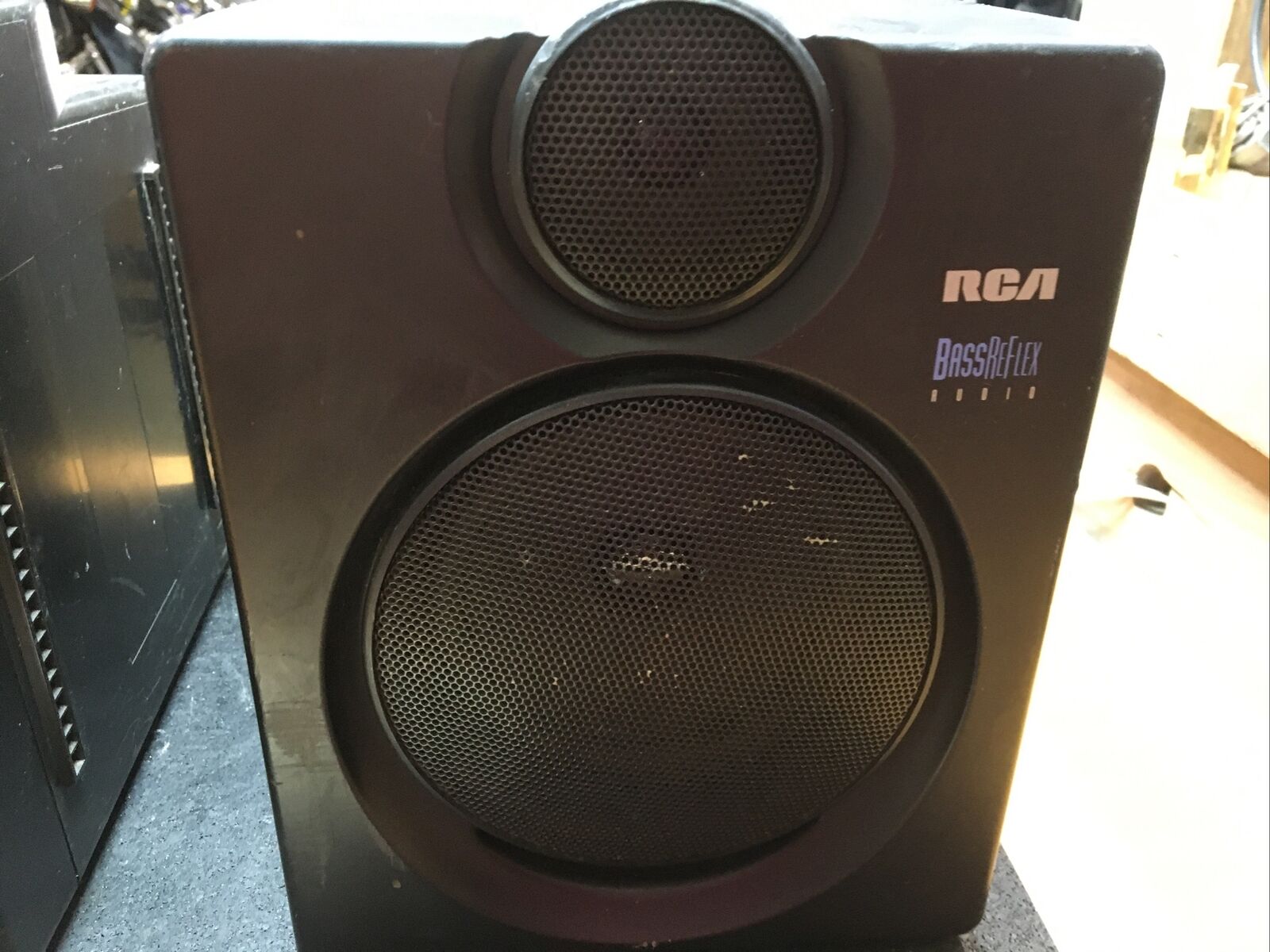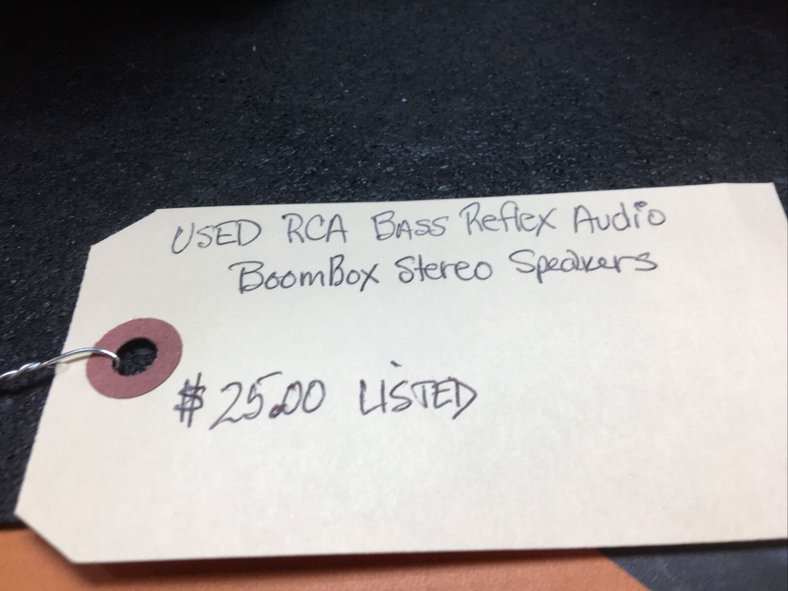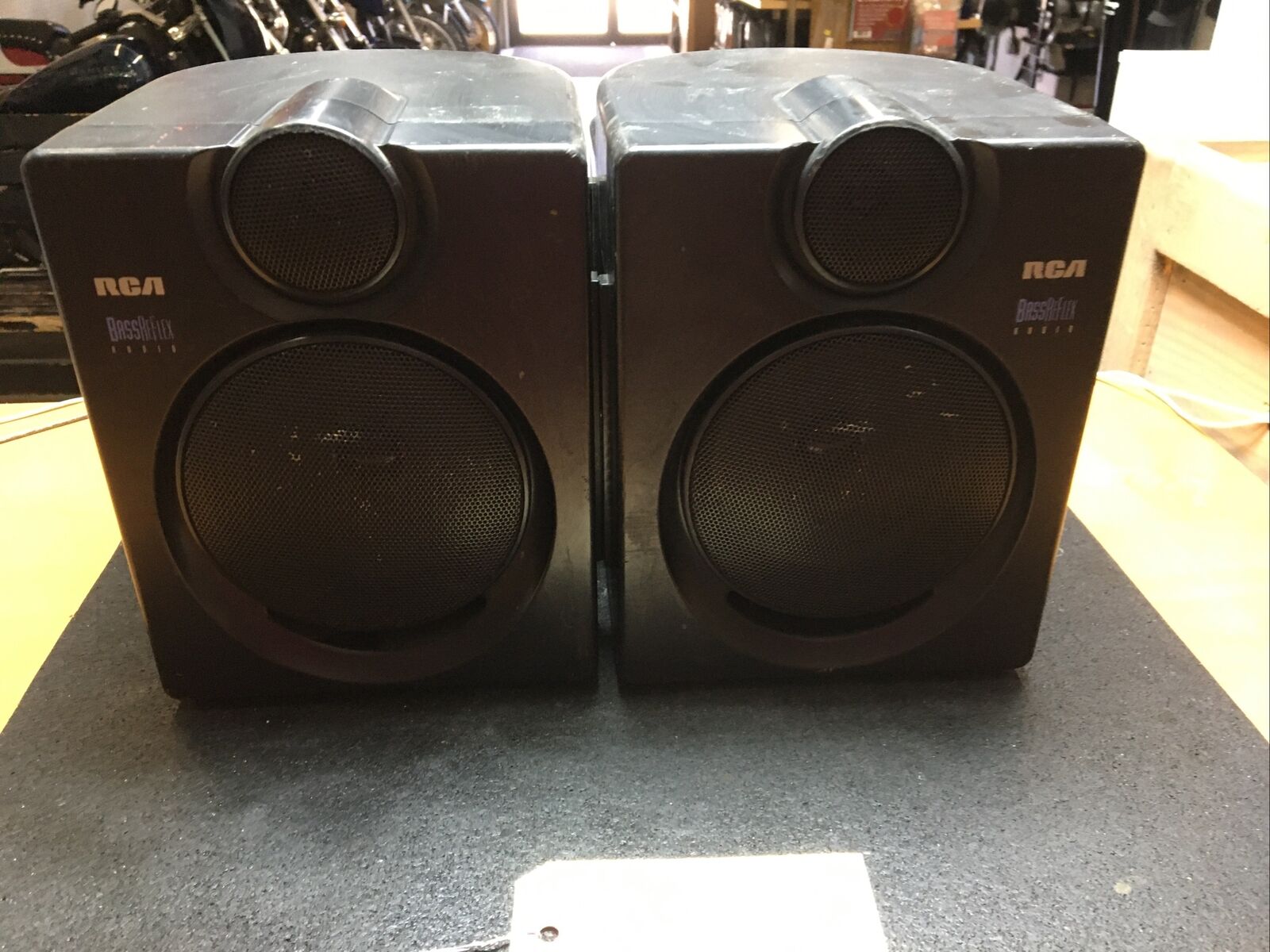 RCA Bass Reflex Audio Boombox Stereo Speakers. Condition is used as seen in pictures. 9” tall, 7” wide, 9-1/2” deep