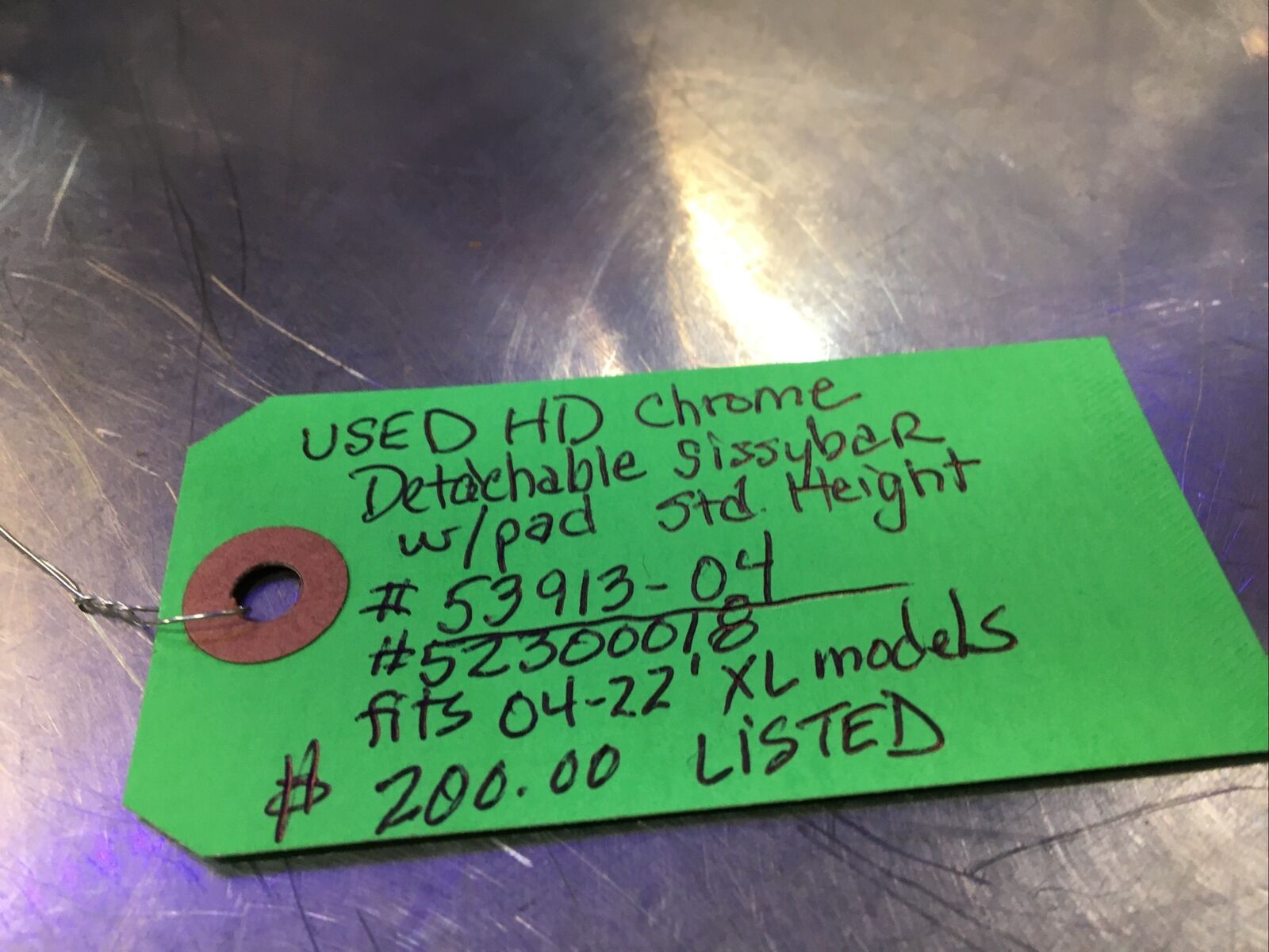 Harley Davidson Chrome Detachable Sissybar W/Pad #53913-04/52300018. Condition is used. Fits 04-22’ XL models buyer is responsible for fitment and applications