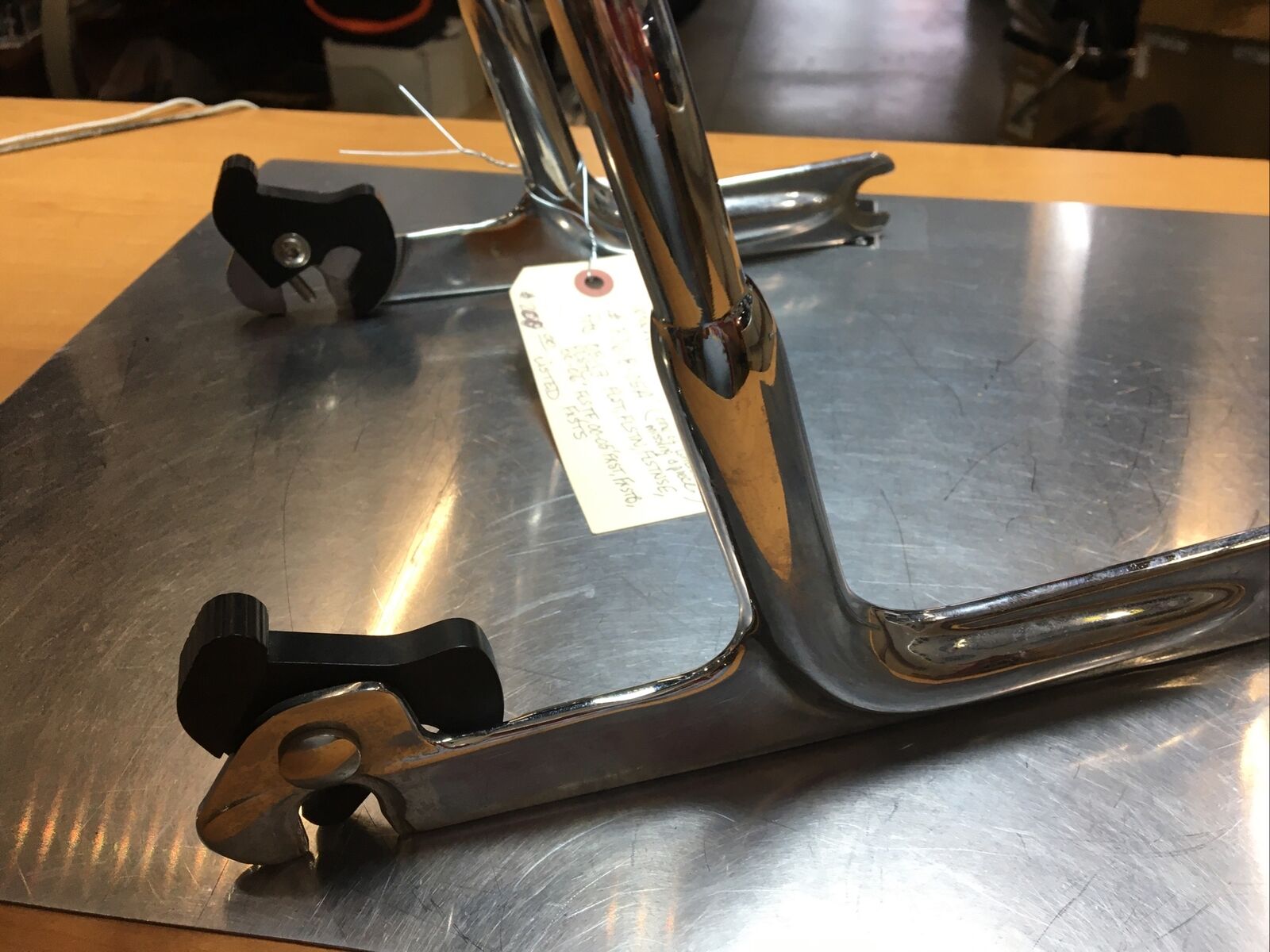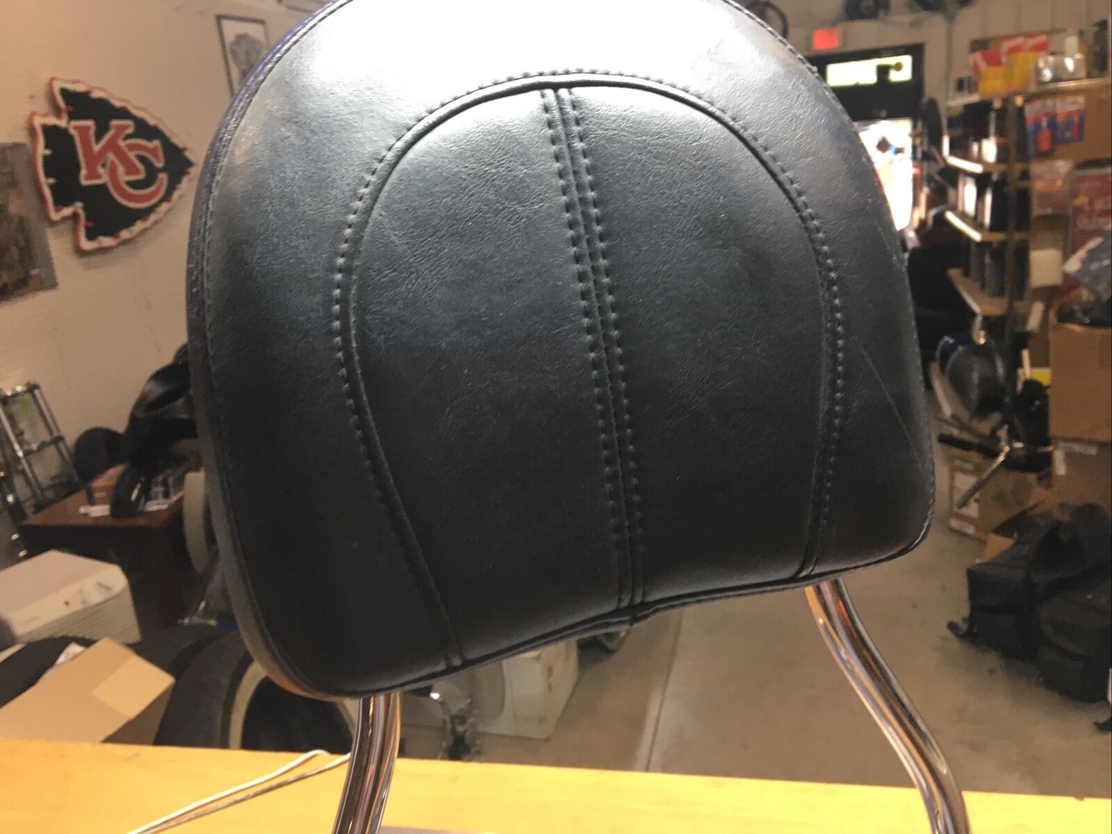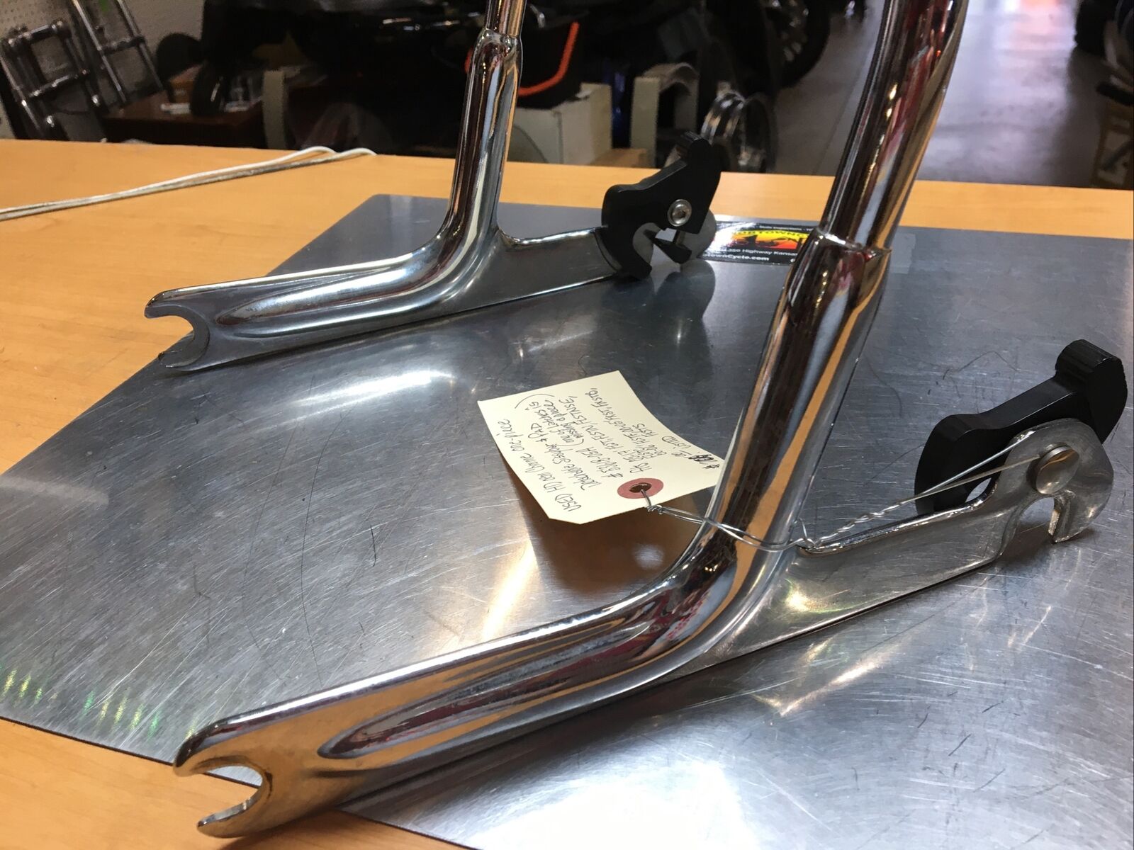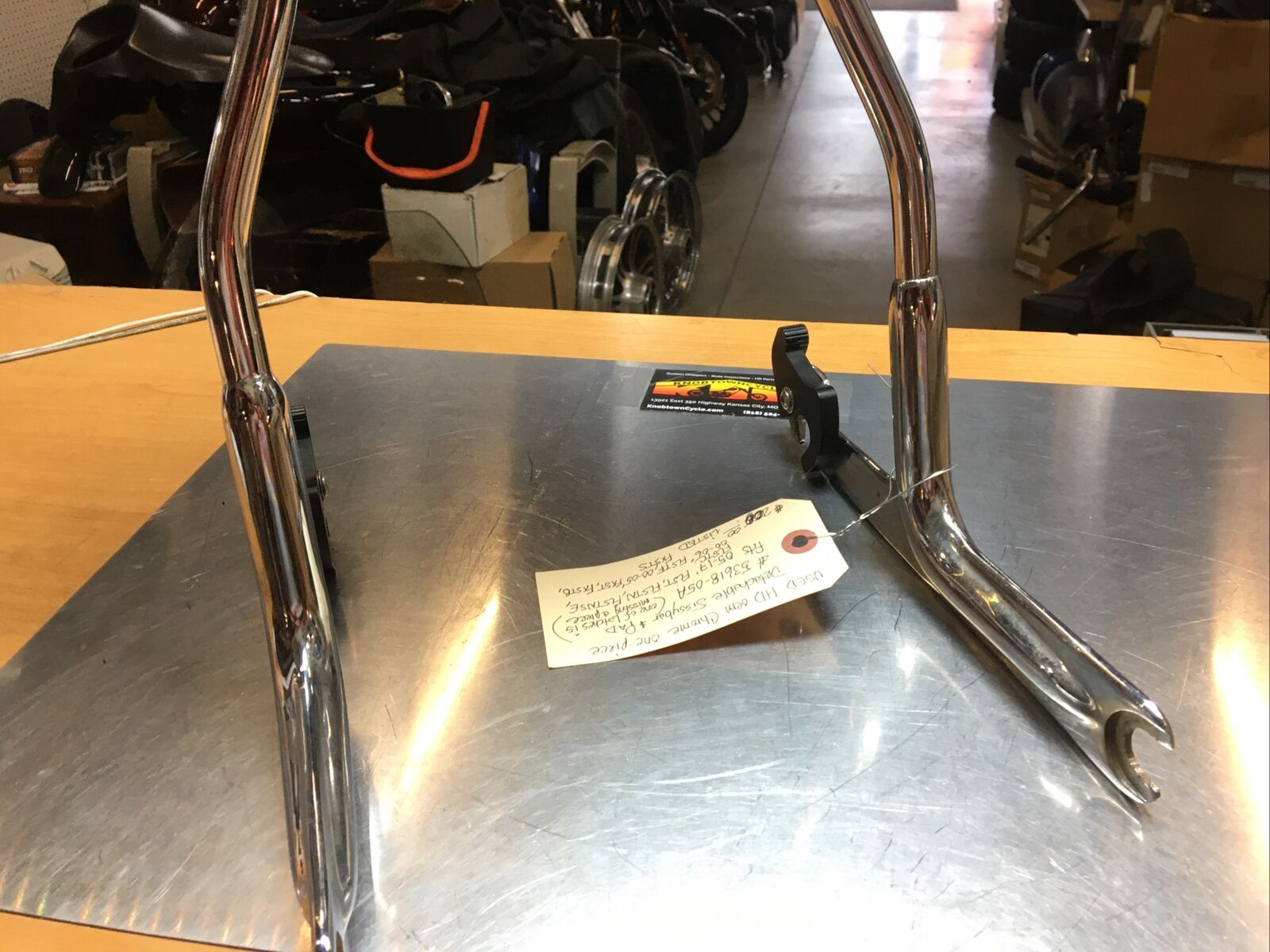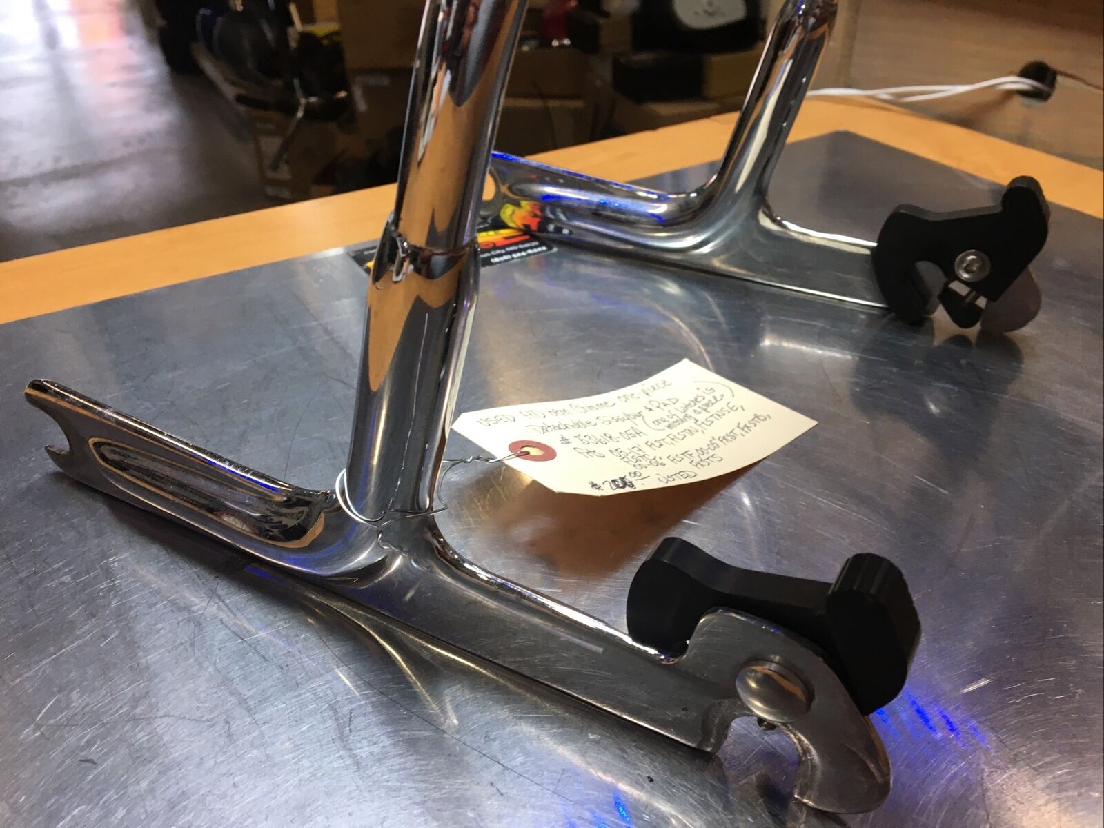 The chrome finish adds a touch of elegance and sophistication to your bike, enhancing its overall aesthetic appeal. Despite being used, this sissybar and pad are still in great condition, with the only minor issue being one latch missing a piece. However, this does not compromise the functionality of the product.