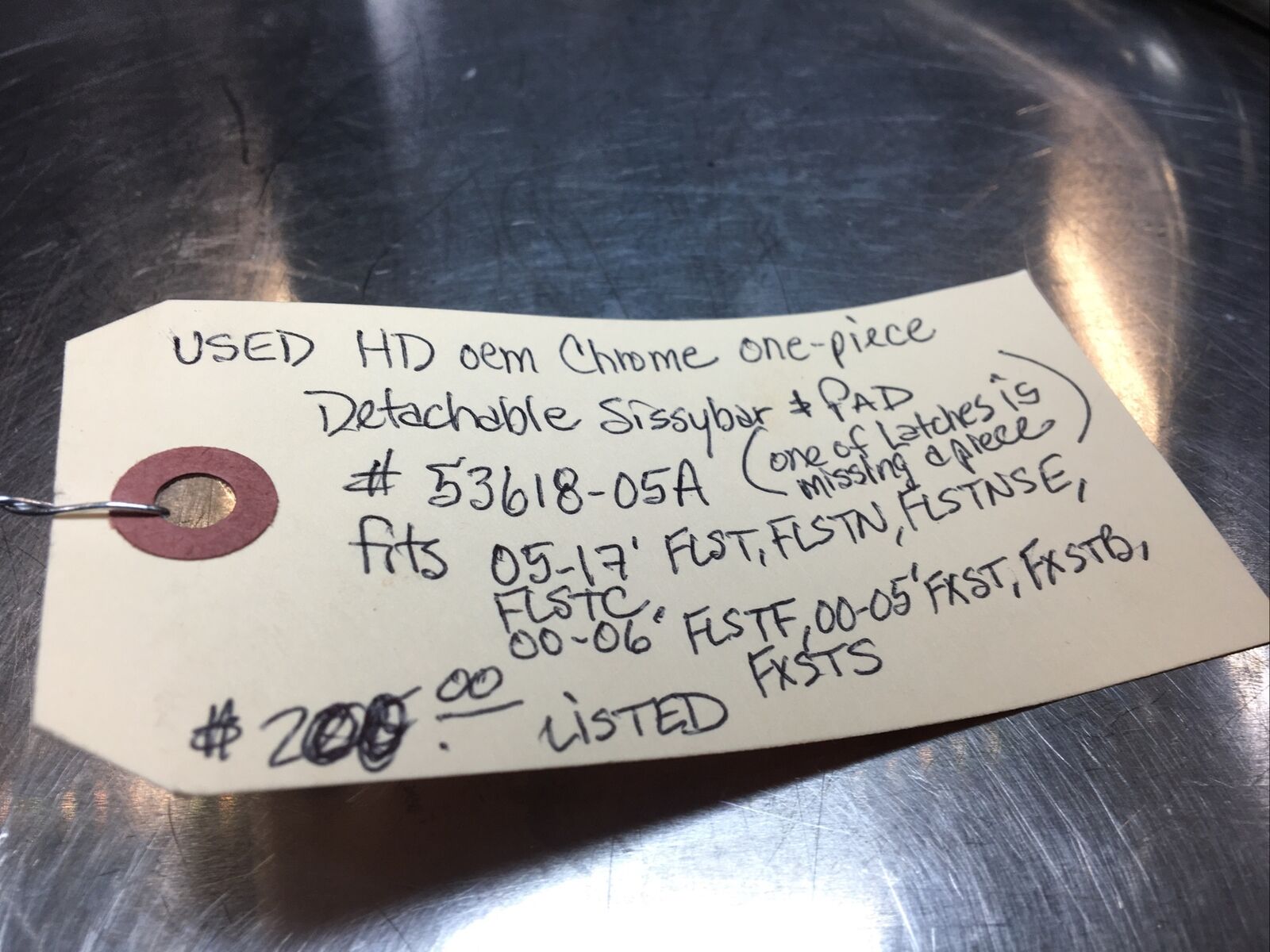 Harley Davidson oem Chrome One-Piece Detachable Sissybar and Pad #53618-05A. Condition is used. One of the latches is missing a piece.Fits 05-17’ FLST, FLSTN, FLSTNSE, FLSTC, 00-06’ FLSTF, 00-05’ FXST, FXSTB, FXSTS models buyer is responsible for fitment and applications