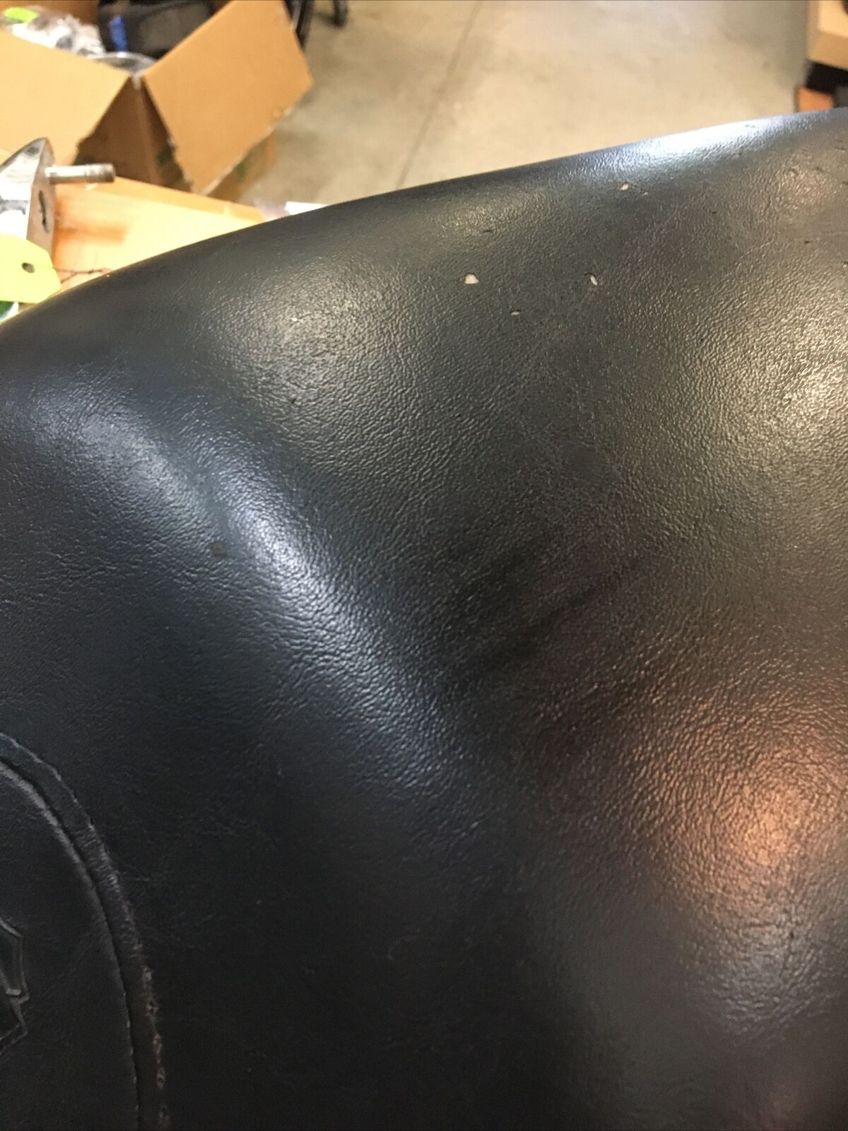 Despite being a used item, this seat still holds its value with its durable construction and classic black color. The seat may show signs of wear, such as small holes, a scrape, and worn stitches, but these imperfections only add to its character and tell a story of countless miles traveled on the open road.