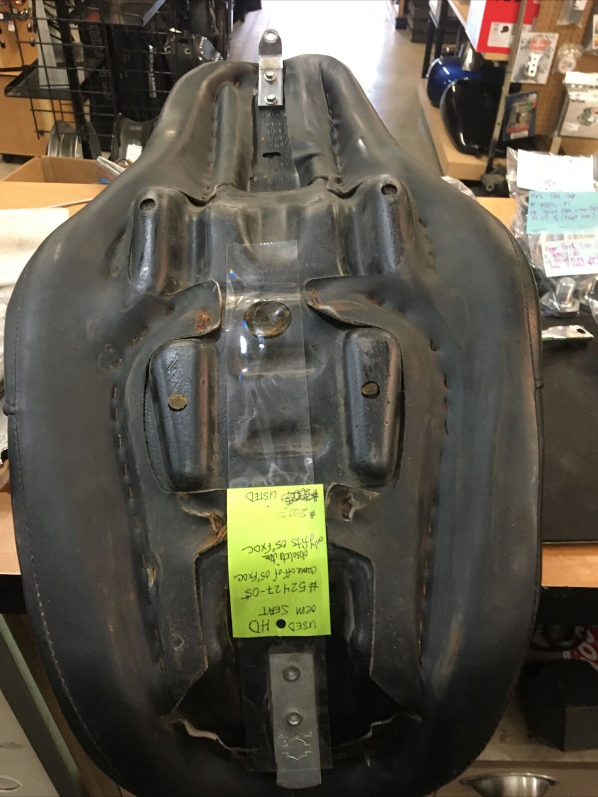 Harley Davidson OEM Seat #52427-05. Condition is “Used”.fits 2005 FXDC buyer is responsible for fitment and applications no returns has some little holes and a scrape and worn along stitches as seen in pictures