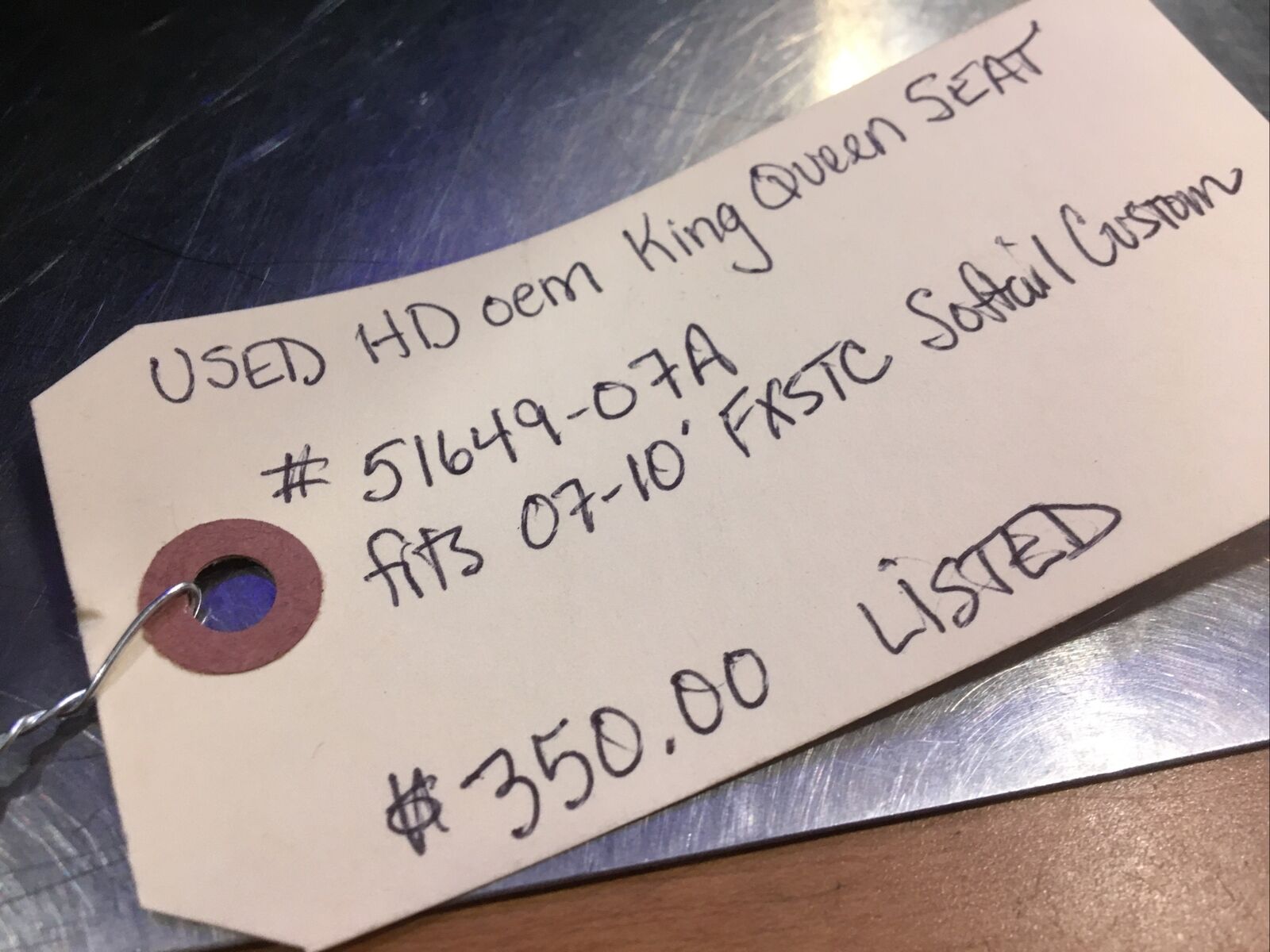 Harley Davidson oem King Queen Seat #51649-07A. Condition is used. Has a little gouge as seen in pictures.Fits 07-10’ FXSTC models buyer is responsible for fitment and applications