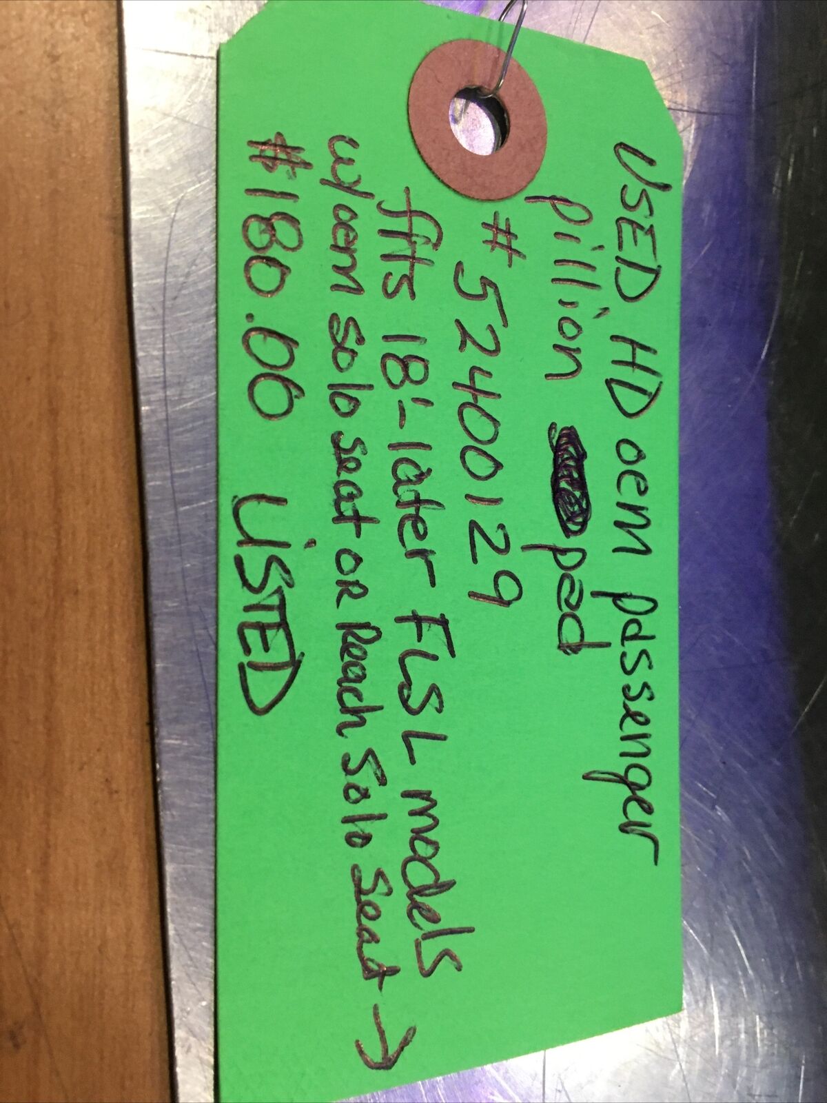 Harley Davidson oem Passenger Pillion Pad #52400129. Condition is used. Fits 18’-later FLSL models with oem solo seat or reach solo seat #52000303 buyer is responsible for fitment and applications