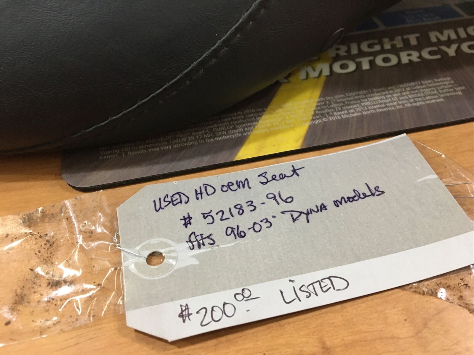 Harley Davidson oem Seat #52183-96. Condition is used. Rear seat bracket missing.Fits 96-03’ Dyna models buyer is responsible for fitment and applications