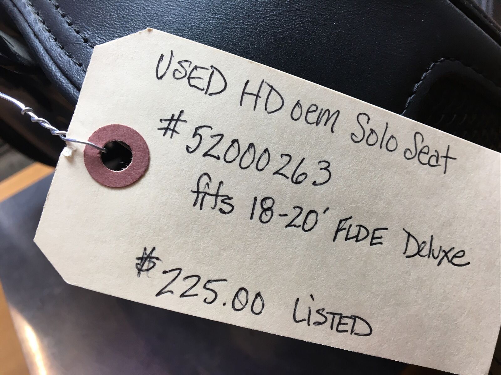 Harley Davidson oem Solo Seat #52000263. Condition is used. Fits 18-20’ FLDE Deluxe buyer is responsible for fitment and applications