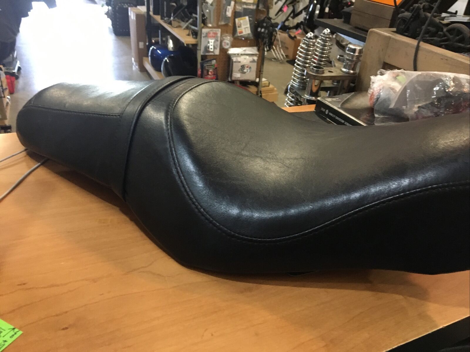 Crafted in the United States with precision and attention to detail, this seat features a sleek black finish that complements the classic look of Harley-Davidson motorcycles. The seat is in used condition, but its quality is evident in every stitch and contour. While it may have a cut on the saddle, as shown in the pictures, this only adds to its unique character and charm.