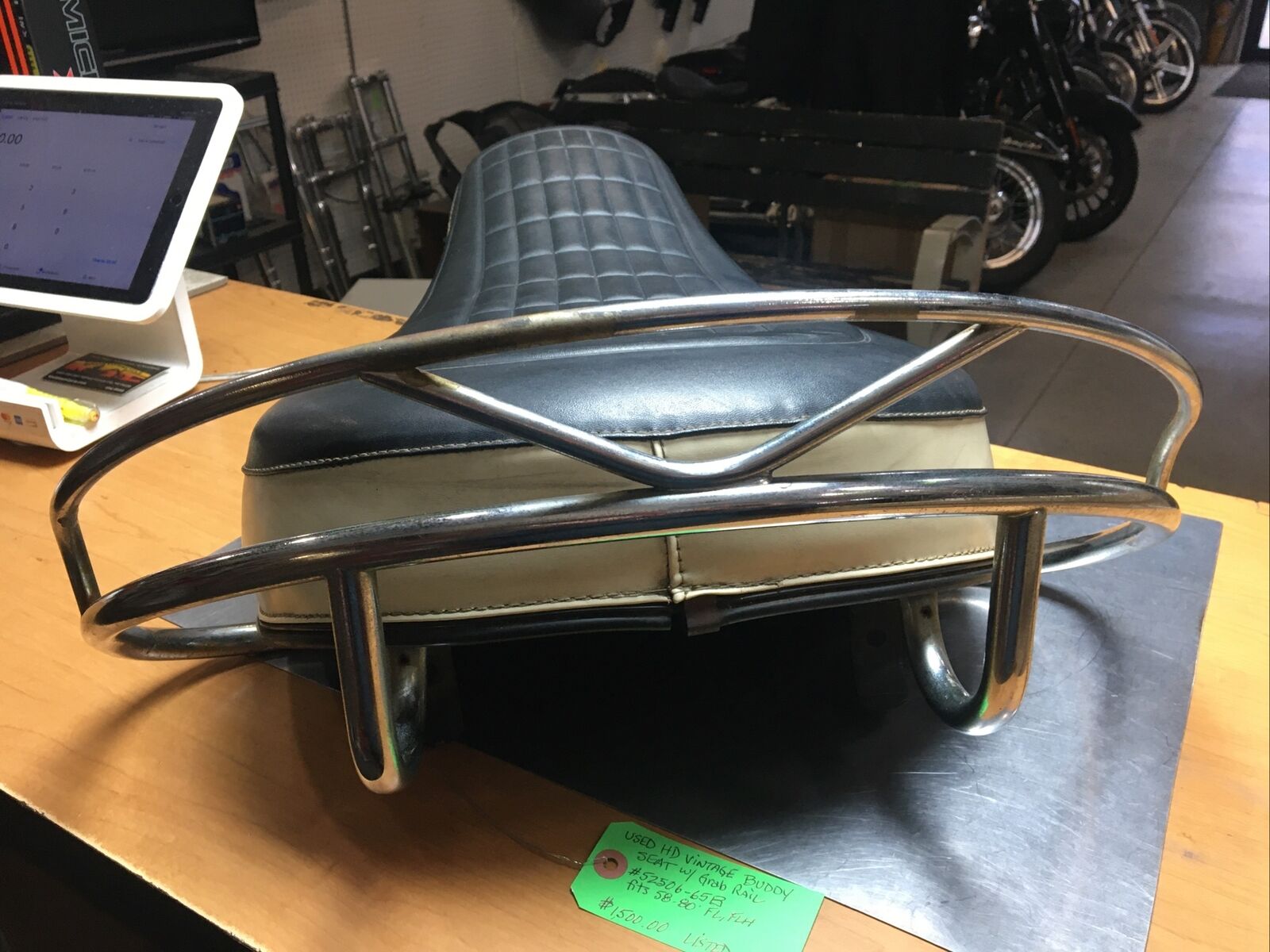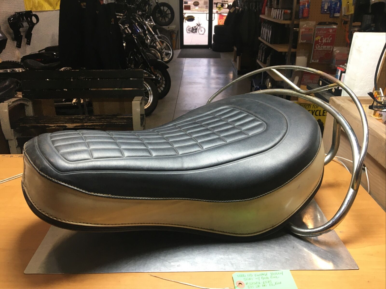 Harley Davidson Vintage Buddy Seat w/Grab Rail #52506-65B. Condition is used. Fits 58-80’ FL, FLH models buyer is responsible for fitment and applications