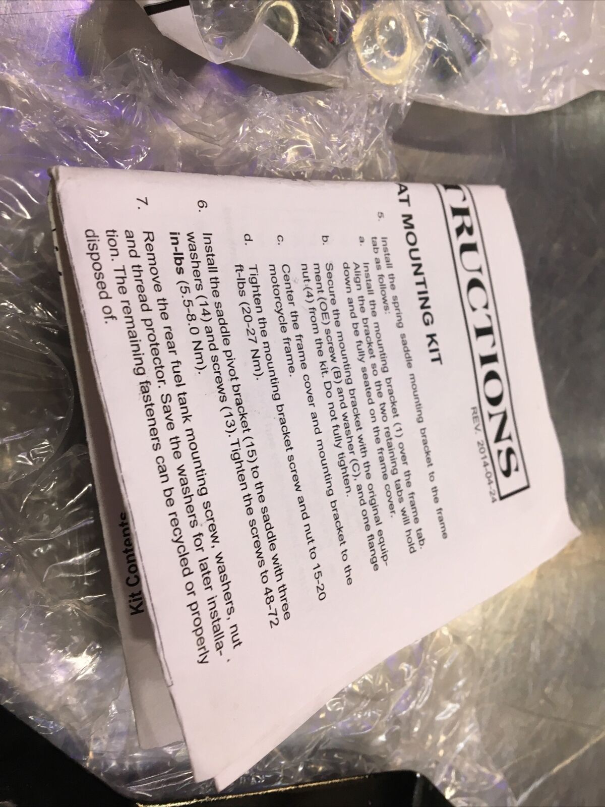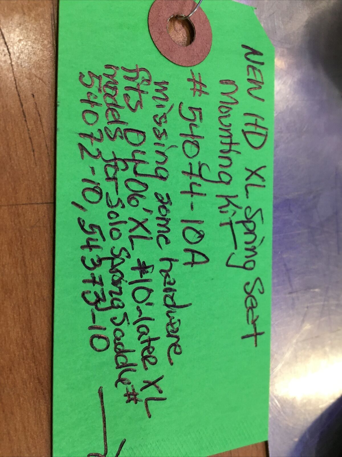 Harley Davidson XL Spring Seat Mounting Kit #54074-10A. Condition is new. Missing some hardware. Fits 04-06’ XL and 10’-later XL models to install Solo Spring Saddle #54072-10, 54373-10 buyer is responsible for fitment and applications