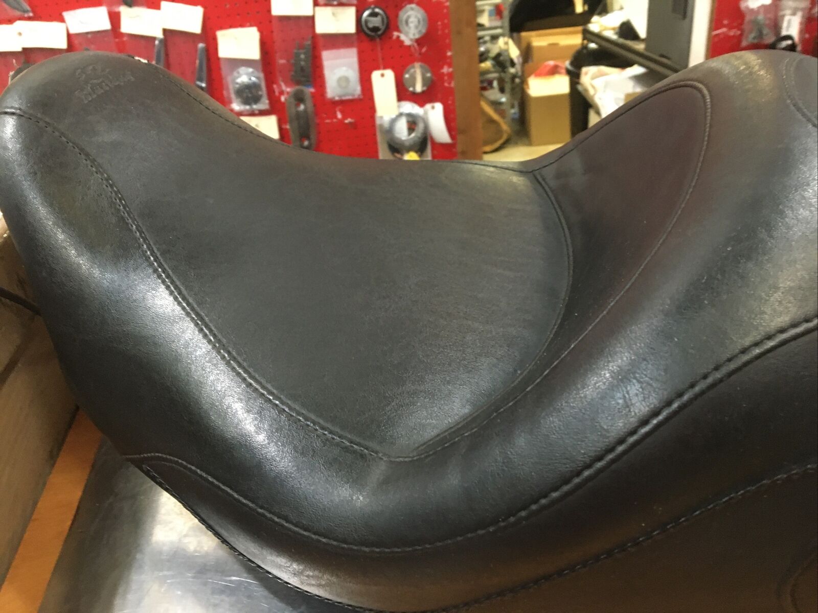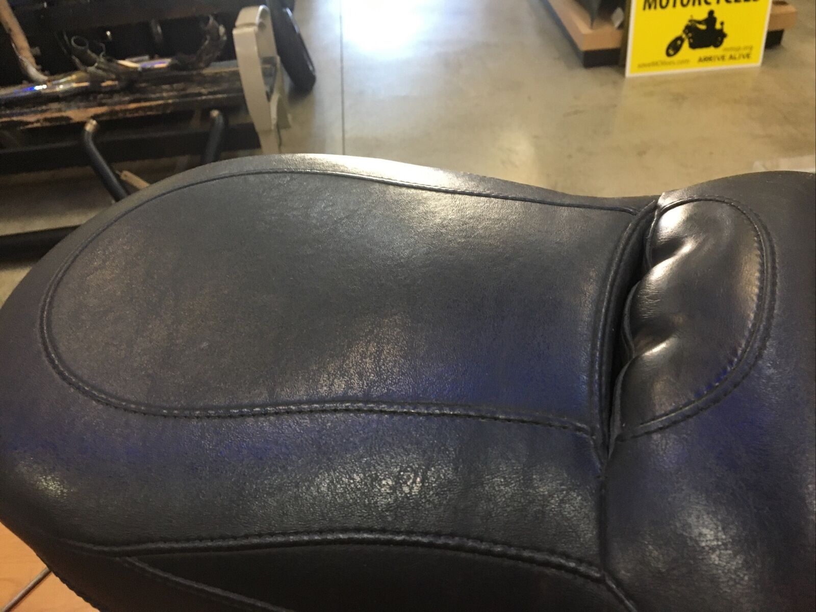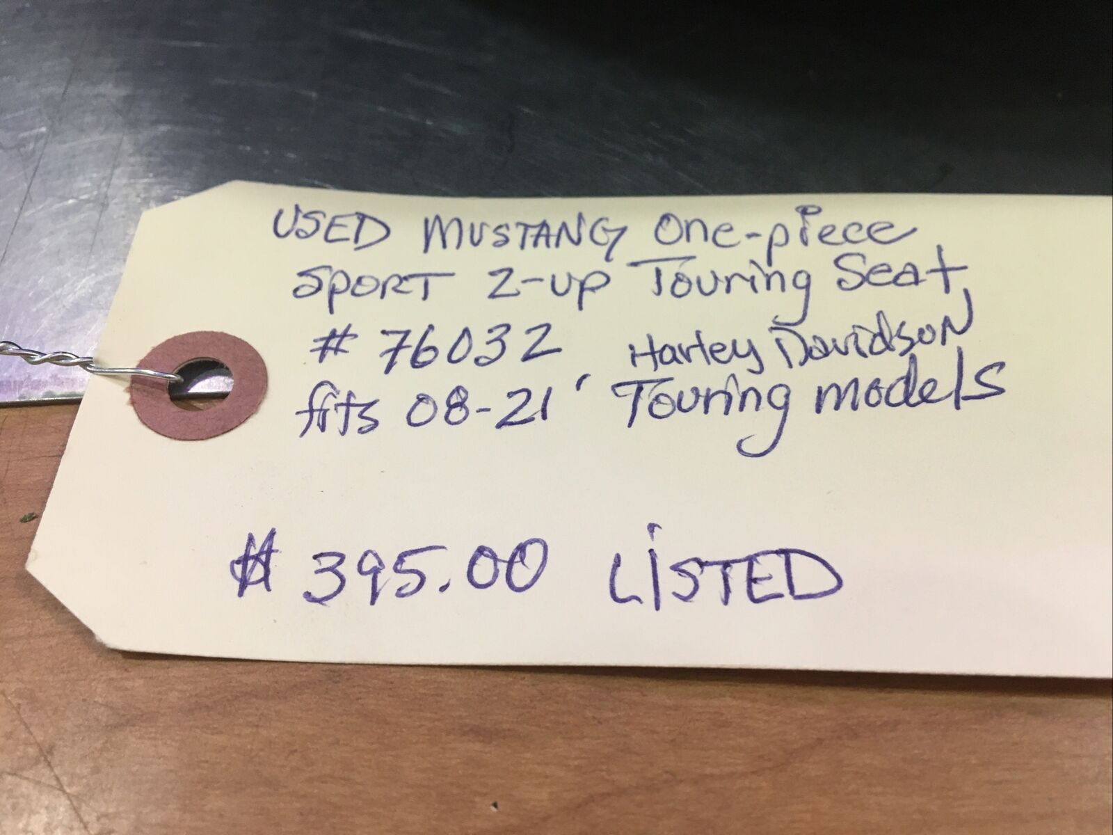 Mustang One-piece Sport 2-up Touring Seat #76032. Condition is used. Has a small tear as seen in pictures. Fits Harley Davidson 08-21’ Touring models buyer is responsible for fitment and applications