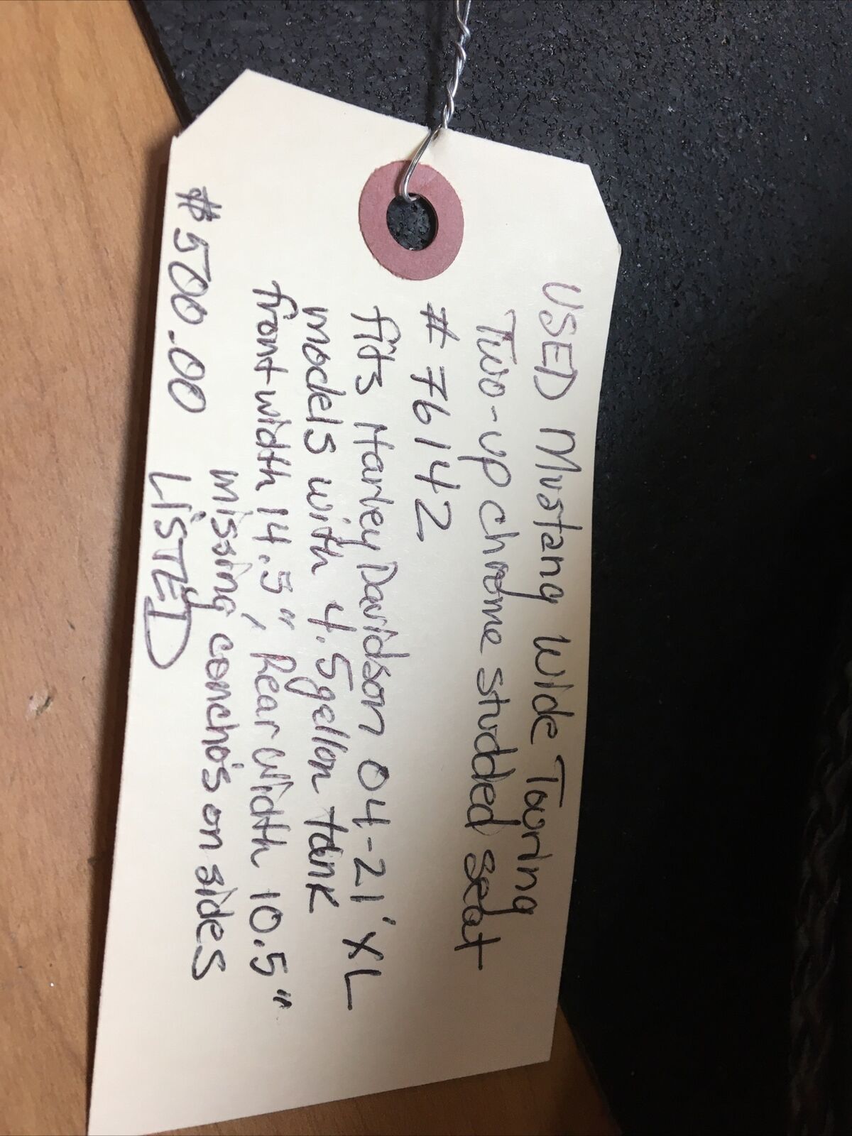 Mustang Wide Touring Two-Up Chrome Studded Seat #76142. Condition is used has a couple spots on the seat a little gouge on rear seat and a spot on the side of the front seen in pictures. Missing conches on the side of seat. Fits Harley Davidson 04-21’ XL models with 4.5 gallon tank. Buyer is responsible for fitment and applications
