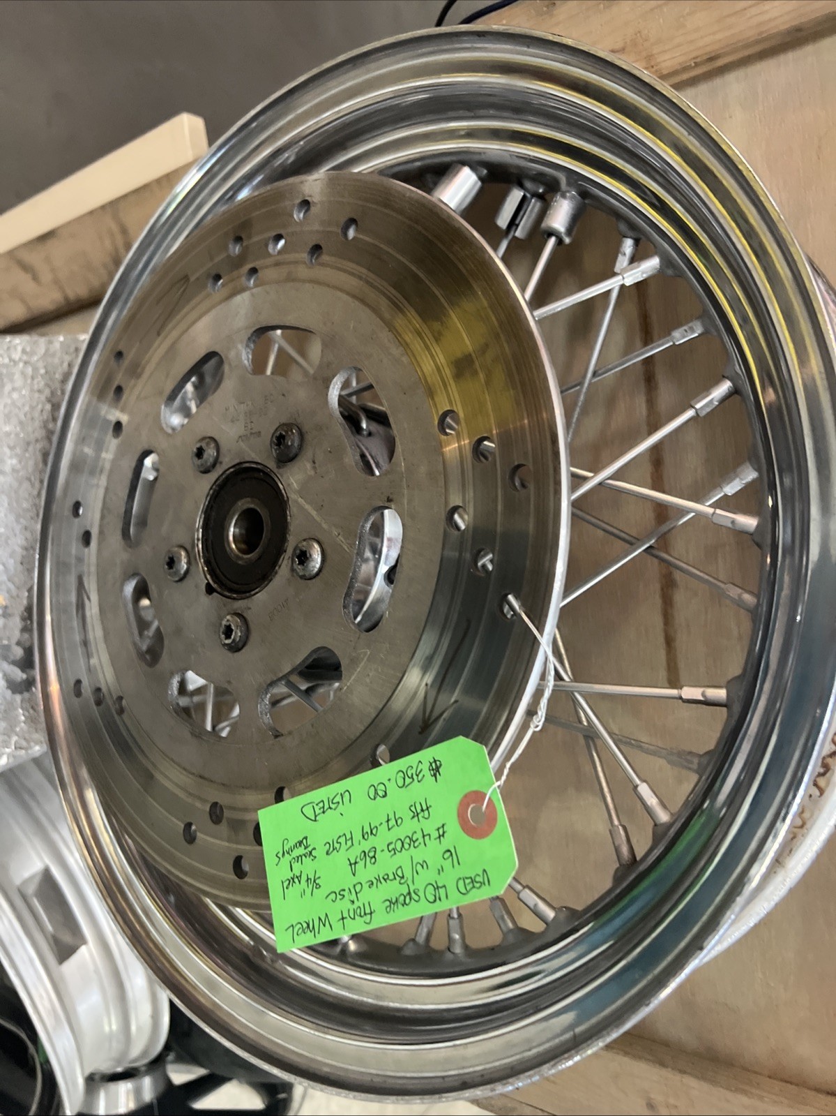 40 Spoke Front Wheel 16” W/Brake Disc #43005-86A. Condition is used. 3/4” axle sealed bearings. Fits Harley Davidson 97-99’ FLSTC models buyer is responsible for fitment and applications