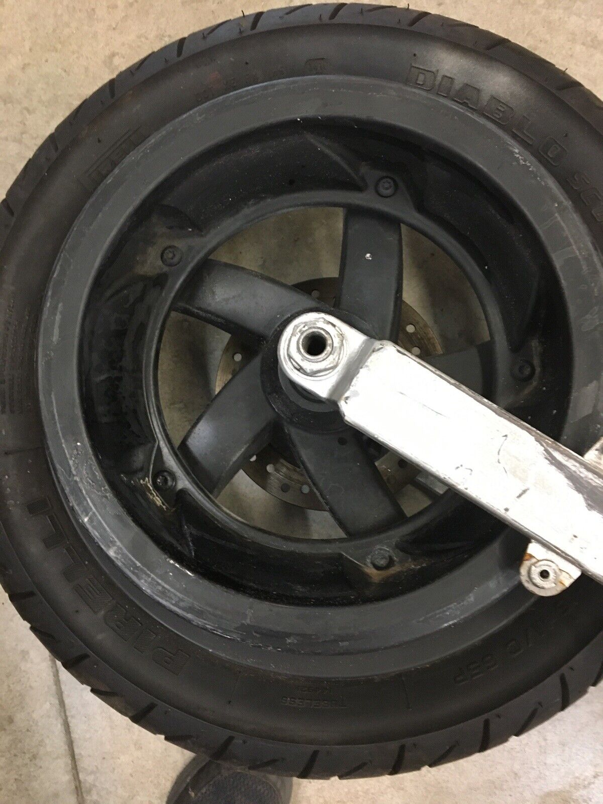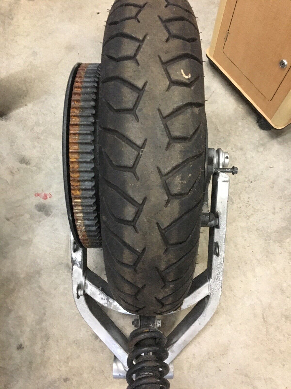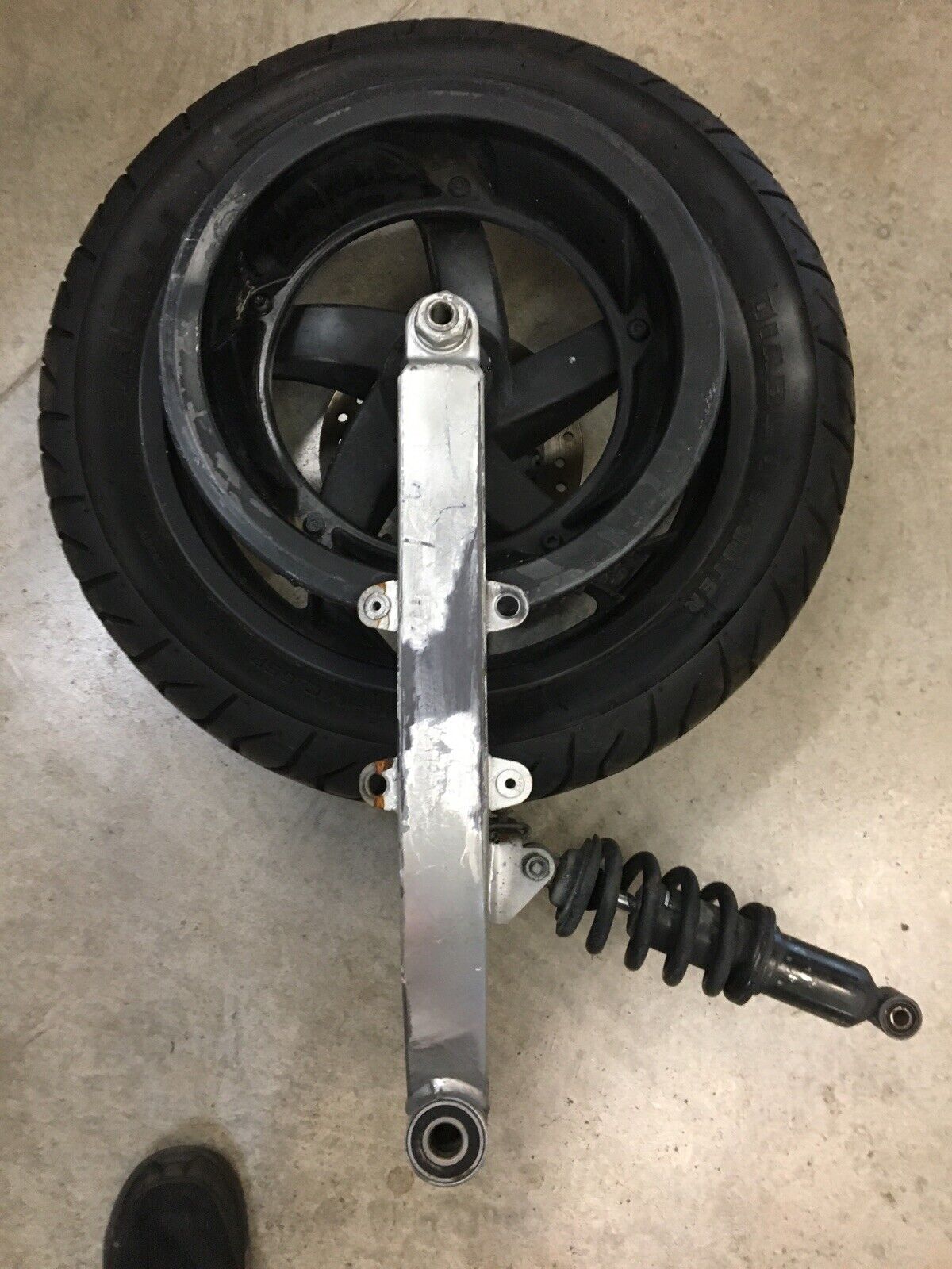 Buell Rear Swingarm With Wheel/Tire And Shock. Condition is Used.came off of 2000 Buell Blast P3 buyer is responsible for fitment and applications no returns