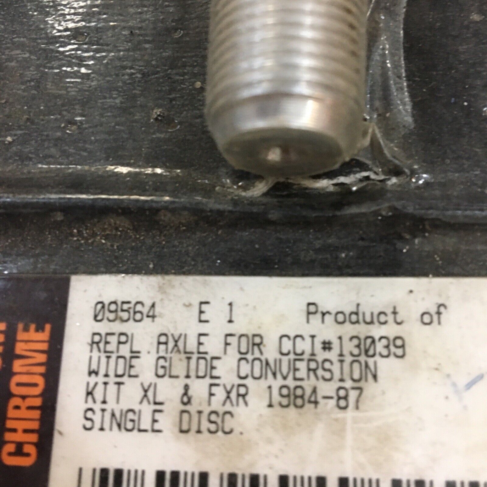 Enter the Custom Chrome replacement front axle #09564. This meticulously crafted axle is designed to fit the Custom Chrome wide glide conversion kit #13039, specifically tailored for Harley Davidson 84-87’ XL and FXR models. Made in Taiwan with precision engineering, this front axle is a perfect blend of durability and style.