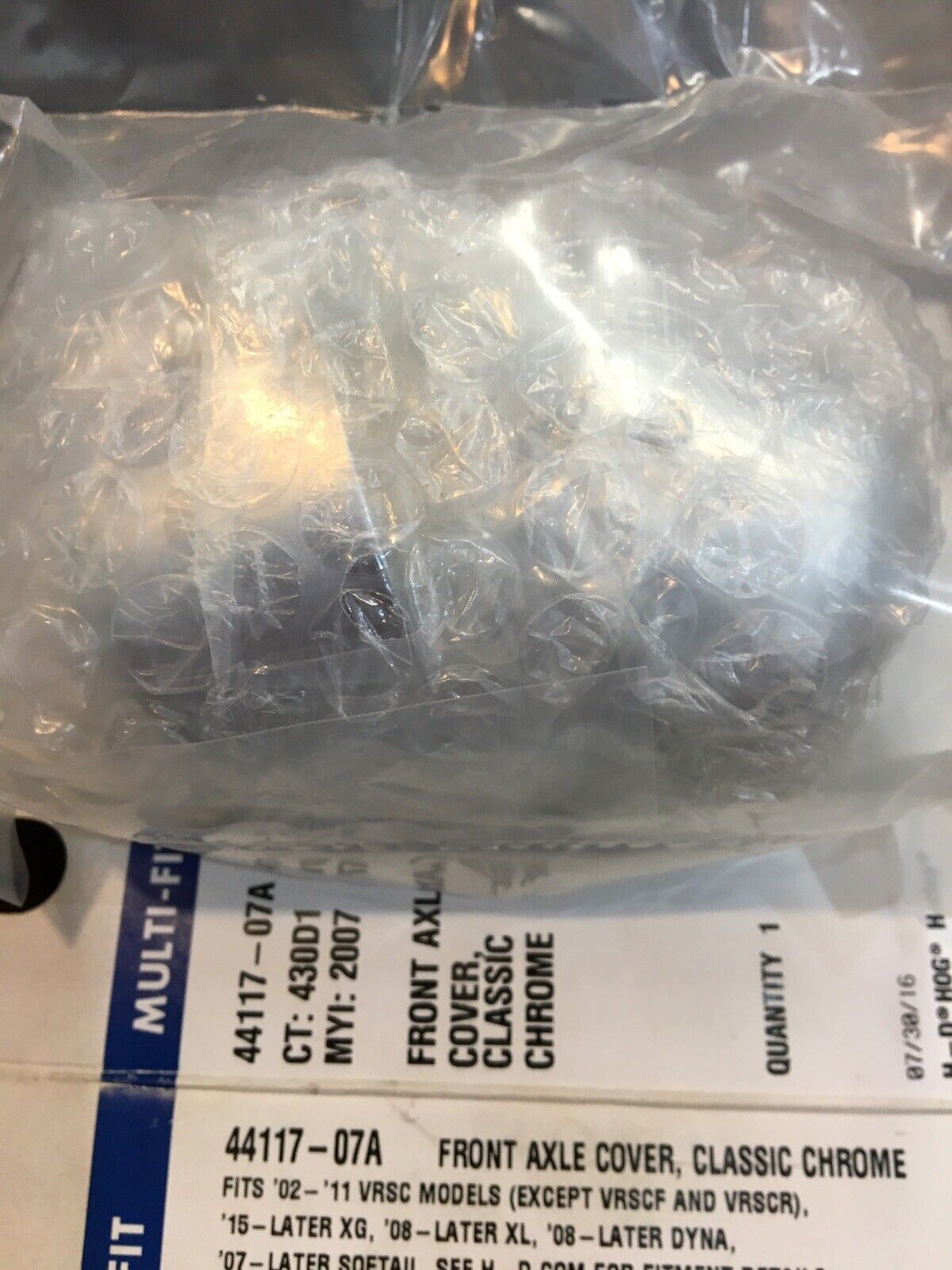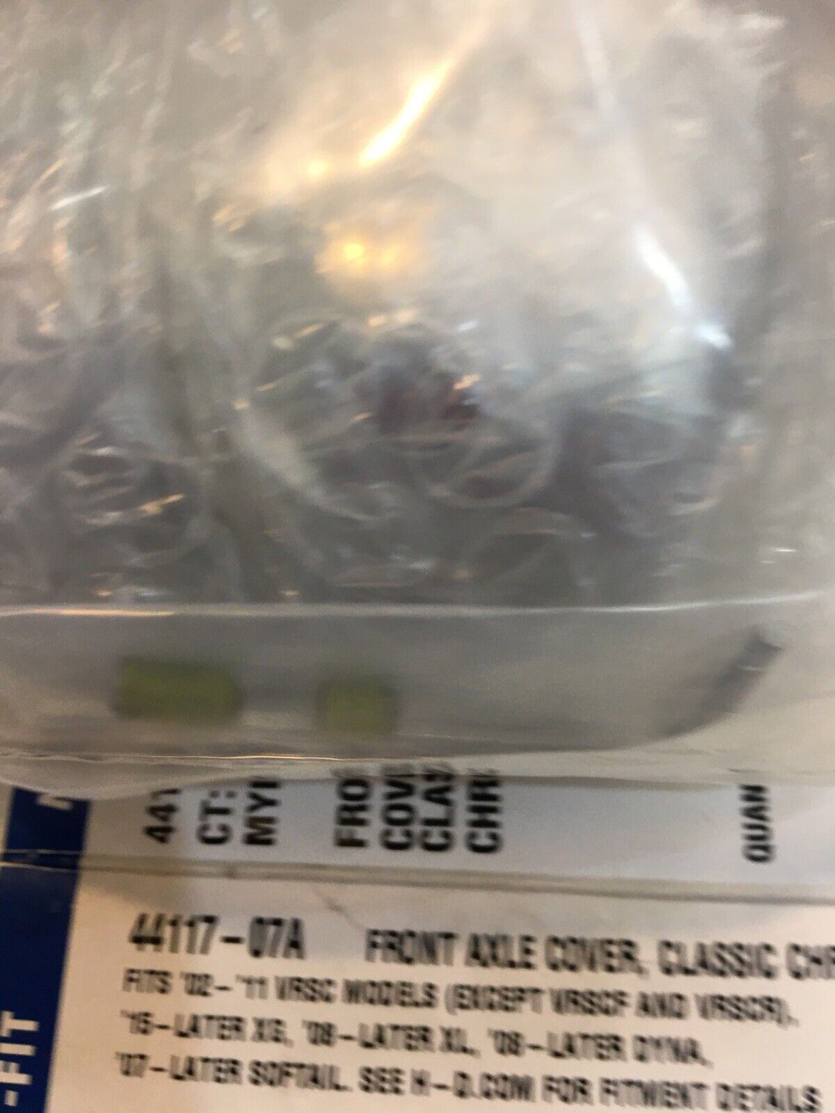 Harley Davidson Classic Chrome Front Axle Covers #44117-07A. Condition is “New”. Shipped with USPS Priority Mail.obsolete item fits 02-11’ VRSC models except VRSCF, VRSCR . Fits 08’-later XL, Dyna models and 07’-later Softails buyer is responsible for fitment and applications
