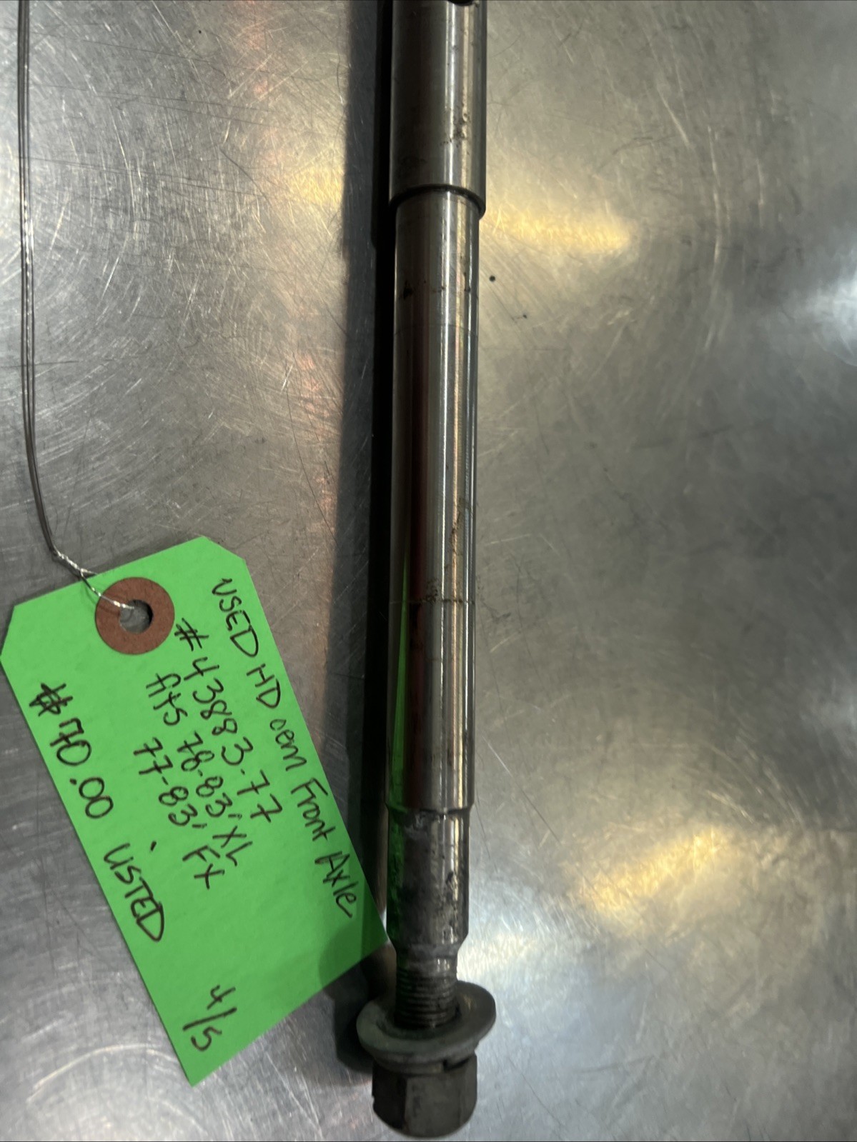 Harley Davidson oem Front Axle #43883-77. Condition is used. Fits 78-83’ XL , 77-83’ FX models buyer is responsible for fitment and applications