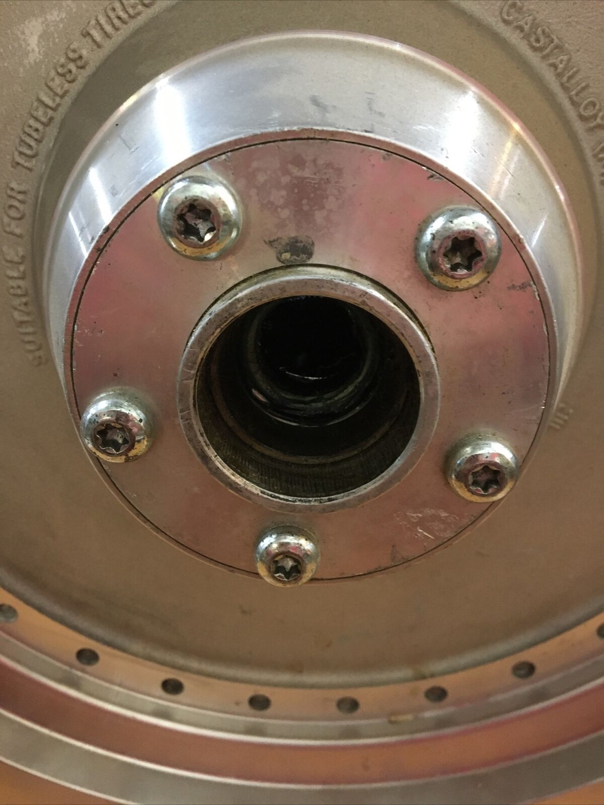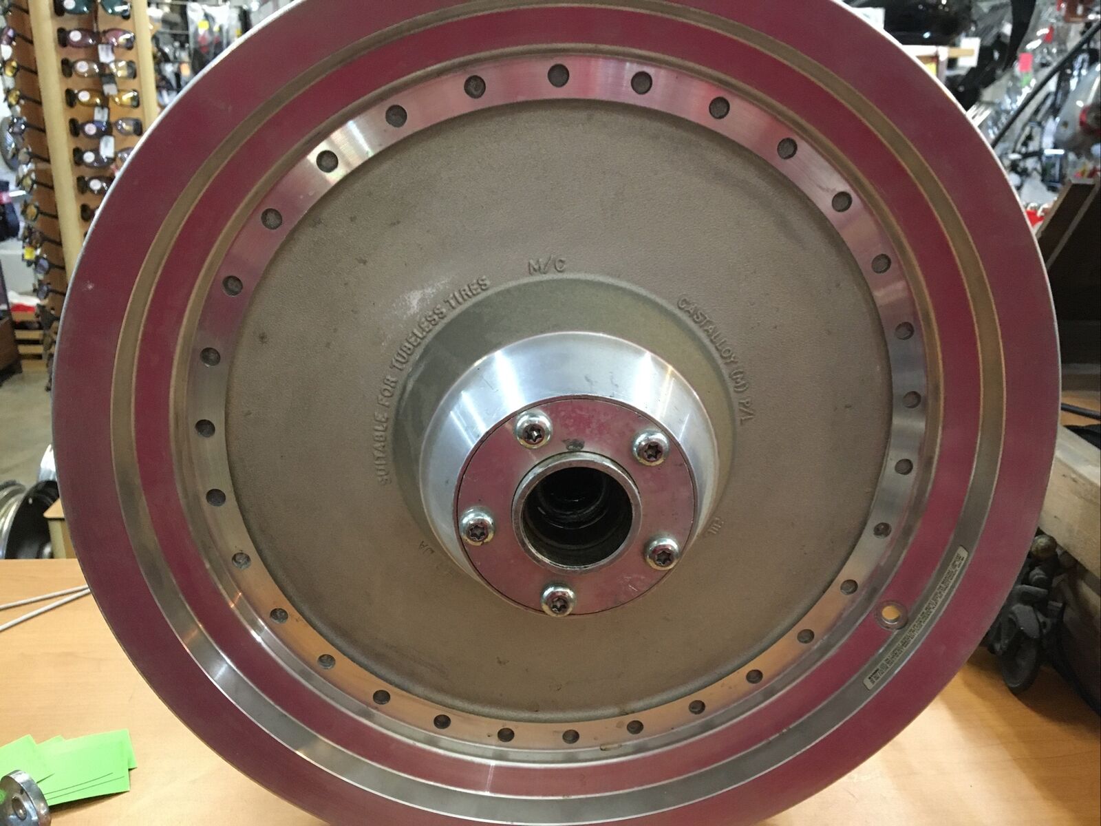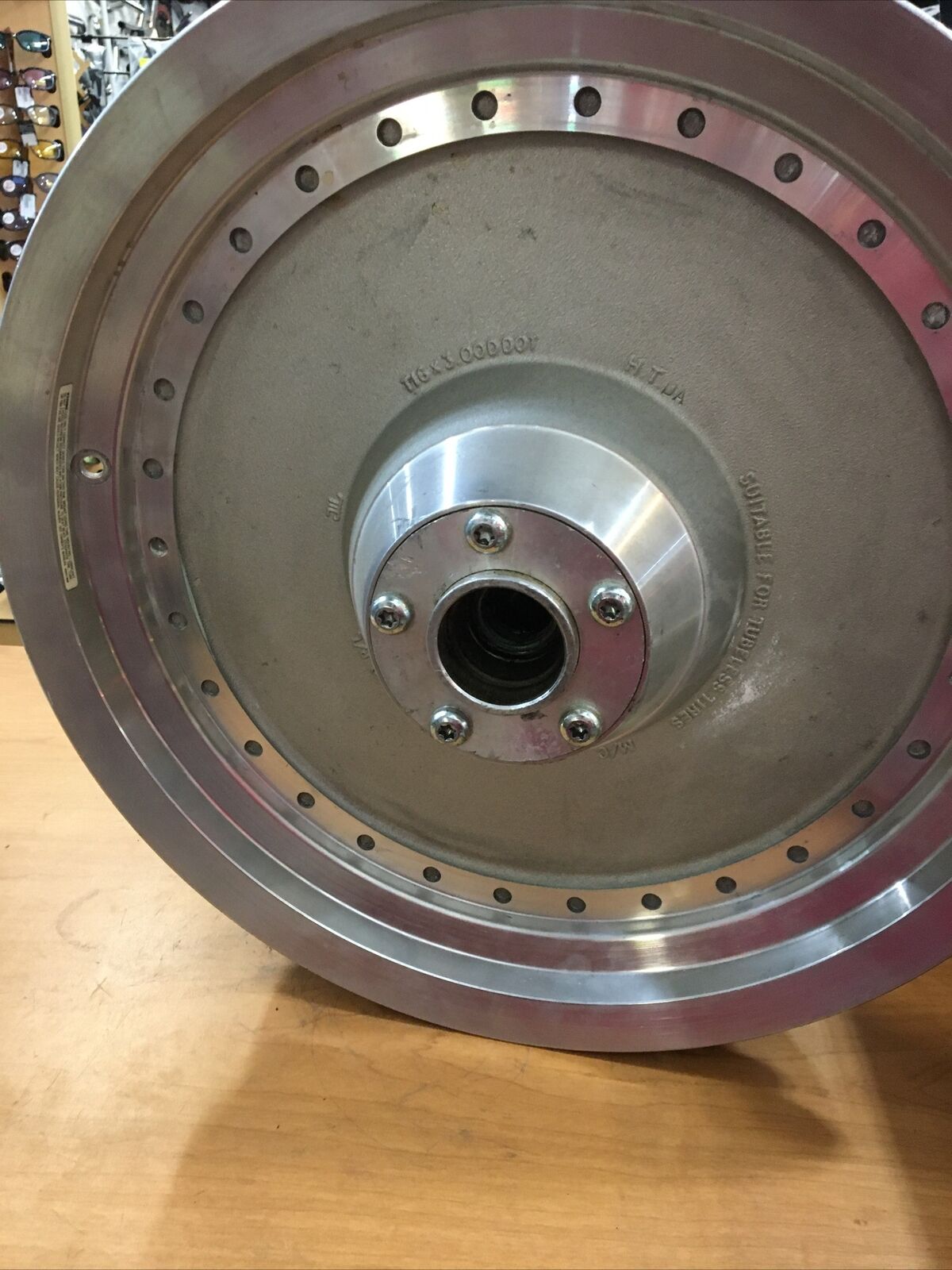 Condition is used. 16”x 3” with 3/4” axles needs bearings, spacers and seals. Fits 91-99’ FLSTF models or custom applications buyer is responsible for fitment and applications no returns