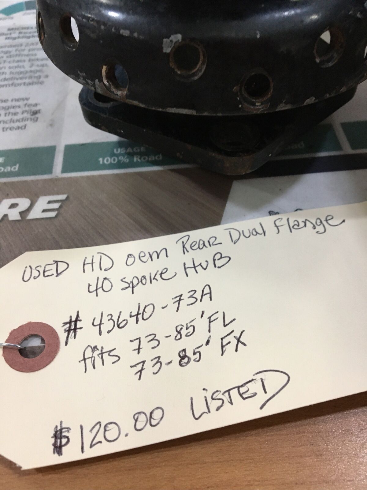 Harley Davidson oem Rear Dual Flange 40 spoke Hub #43640-73A. Condition is used. Fits 73-85’ FL, FX models buyer is responsible for fitment and applications