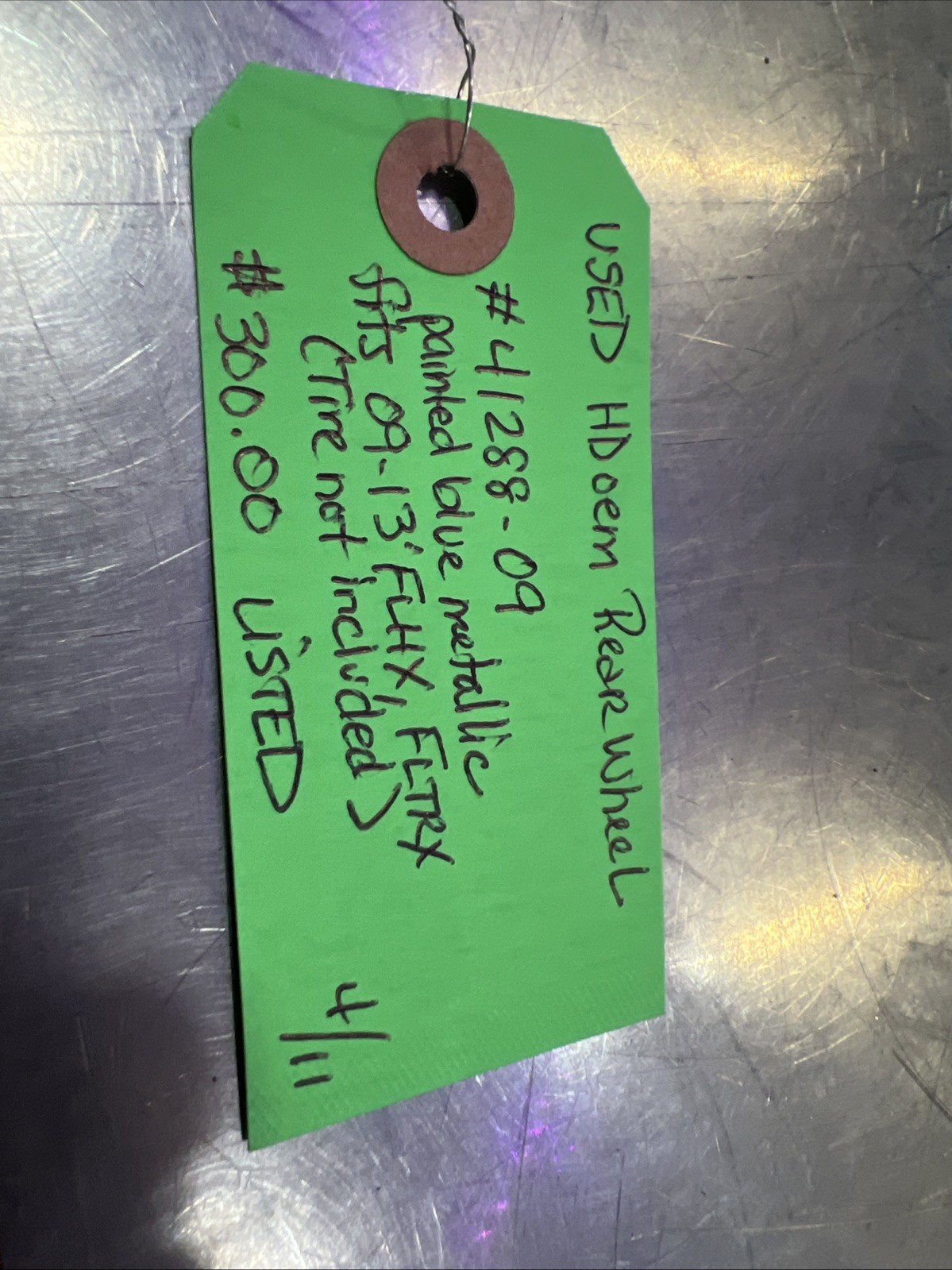 Harley Davidson oem Rear Wheel #41288-09. Condition is used. Painted blue metallic. Tire not included. Fits 09-13’ FLHX, FLTRX Models buyer is responsible for fitment and applications